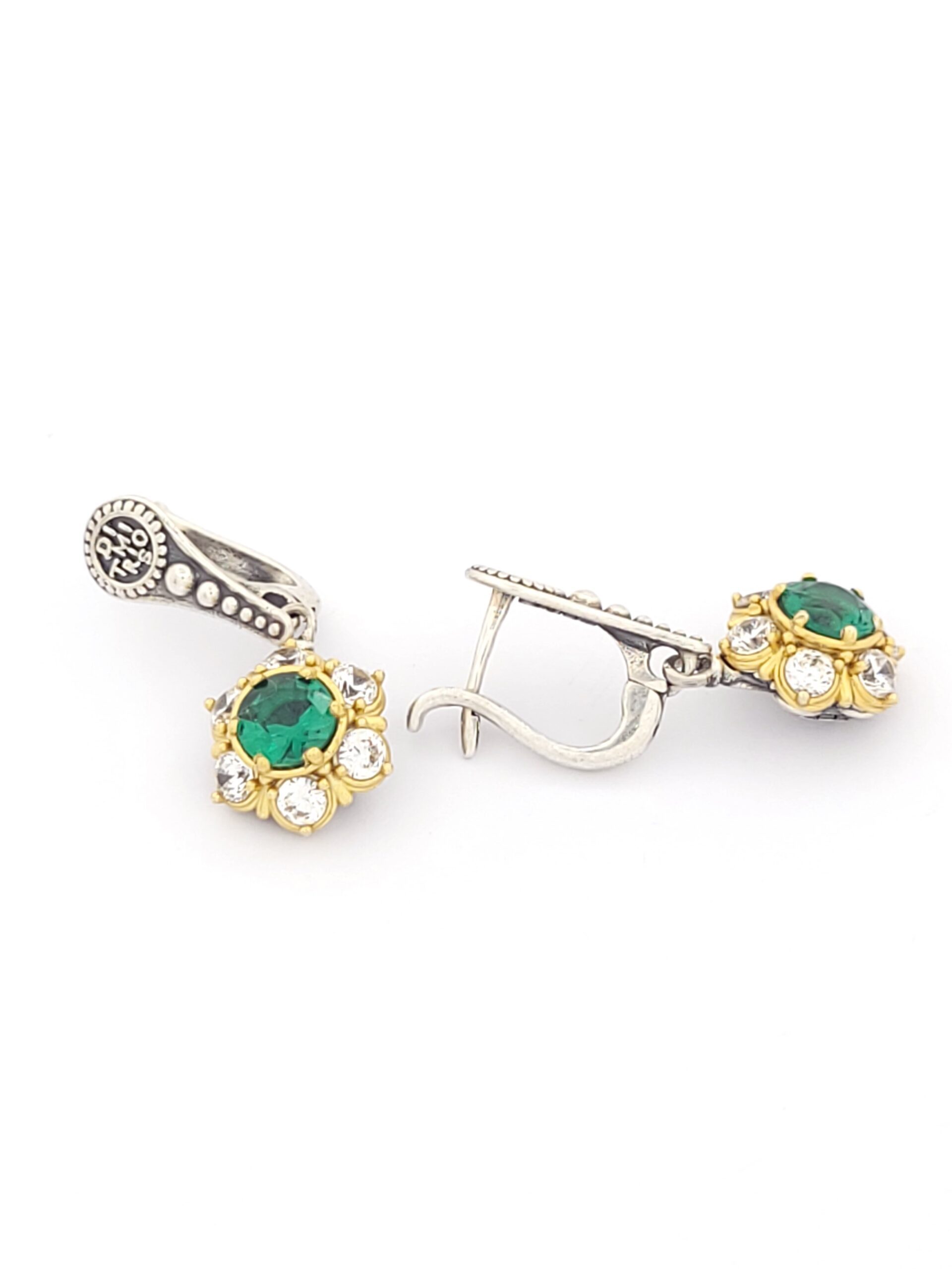 Ασημένια Δίχρωμα Σκουλαρίκια Κρεμαστά Dimitrios-Exclusive Με Πράσινο Και Λευκά Ζιργκόν κωδ.S137