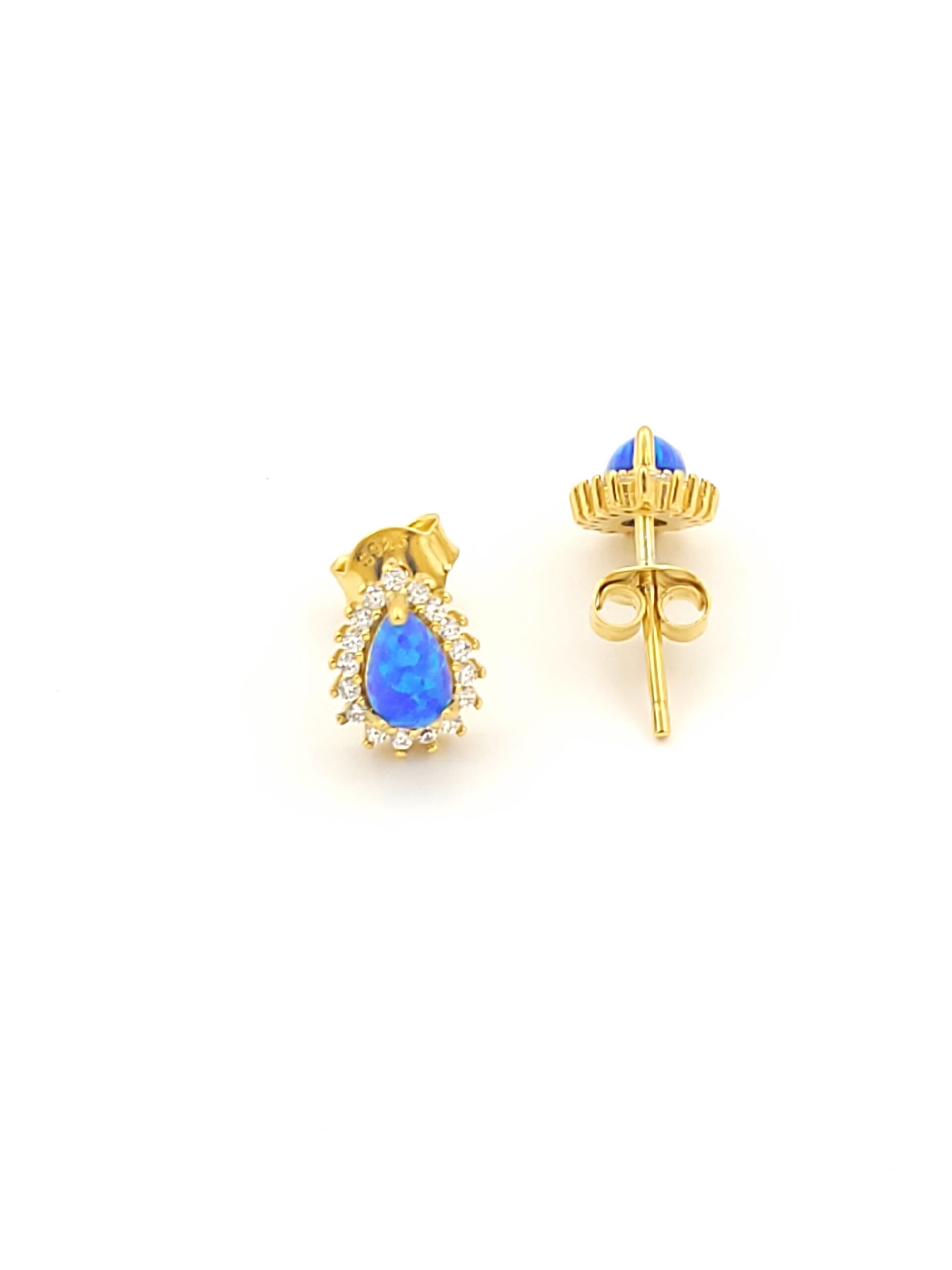 Ασημένια Επιχρυσωμένα Γυναικεία Σκουλαρίκια Καρφωτά Δάκρυ, Με Μπλε Οπάλιο Και Λευκά Ζιργκόν κωδ.107781