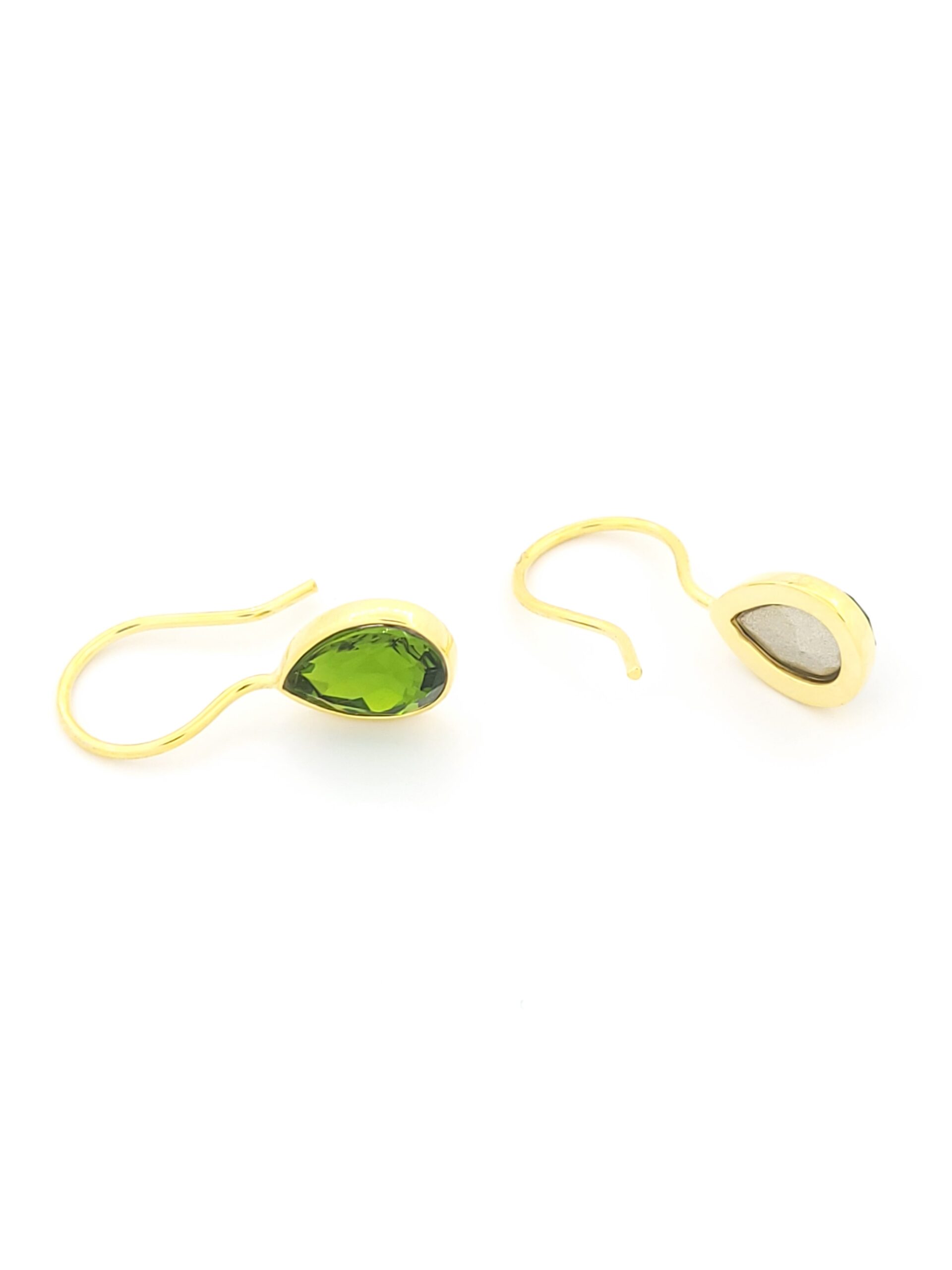 Ασημένια Επιχρυσωμένα Γυναικεία Σκουλαρίκια Κρεμαστά Δάκρυ, Με Πράσινο Ζιργκόν