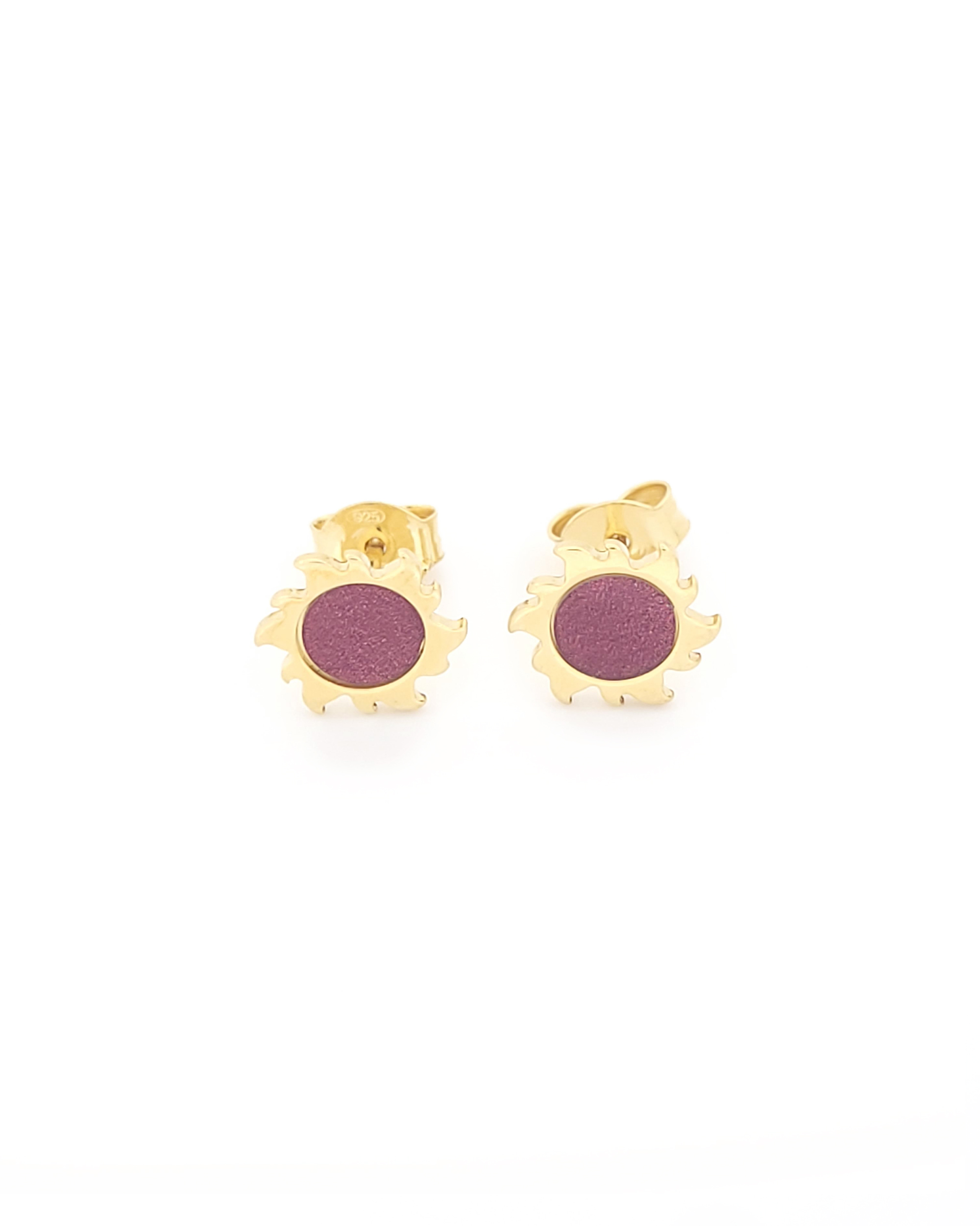 Ασημένια Επιχρυσωμένα Γυναικεία Σκουλαρίκια Καρφωτά, Ήλιος Με Κόκκινο Σμάλτο