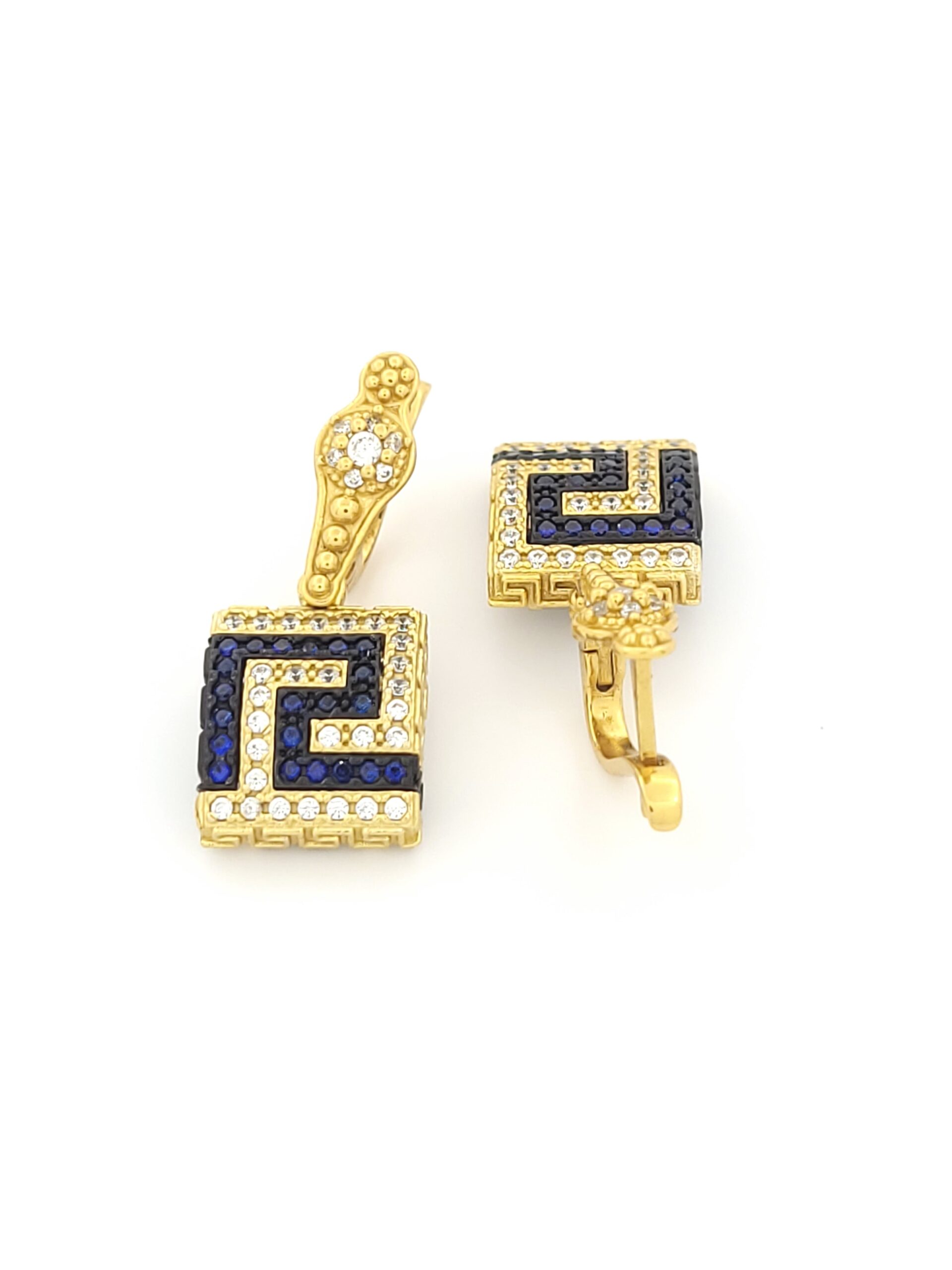 Ασημένια Επιχρυσωμένα Σκουλαρίκια Κρεμαστά Dimitrios-Exclusive, Με Μαίανδρο Με Λευκά Και Μαύρα Ζιργκόν κωδ.S251