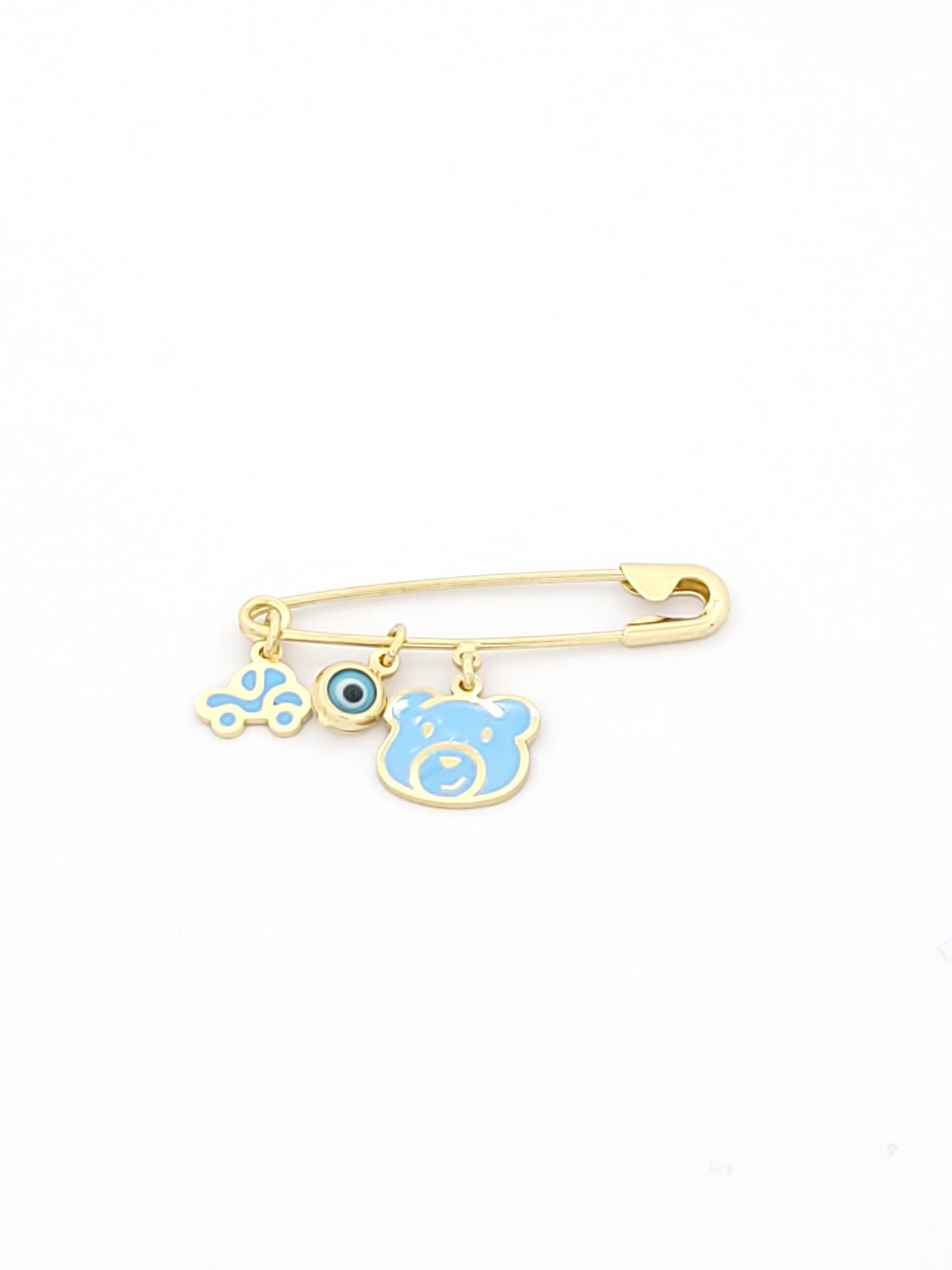 Ασημένια Επιχρυσωμένη Παιδική Παραμάνα , Με Γαλάζιο Αρκουδάκι, Με Γαλάζιο Αυτοκίνητο Και Ματάκι κωδ.104593
