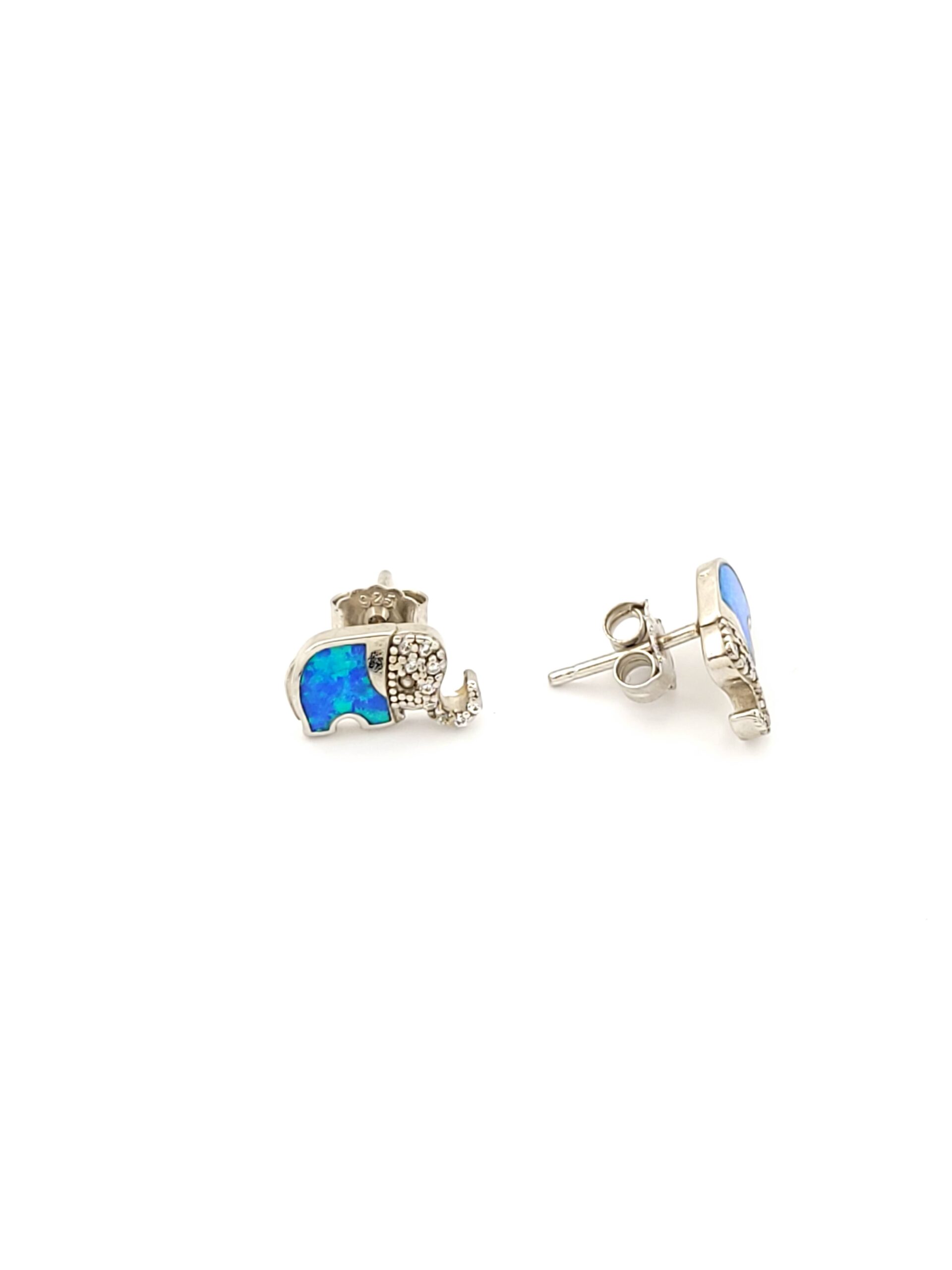 Ασημένια Γυναικεία Σκουλαρίκια Καρφωτά Ελεφαντάκια, Με Μπλε Οπάλιο Και Λευκά Ζιργκόν κωδ.108095