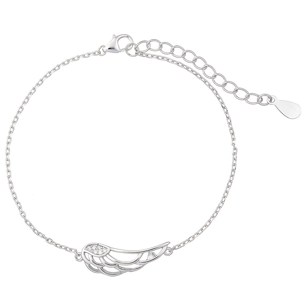 Ασημένιο Γυναικείο Βραχιόλι, Με Φτερό Και Λευκά Ζιργκόν κωδ.17218-1