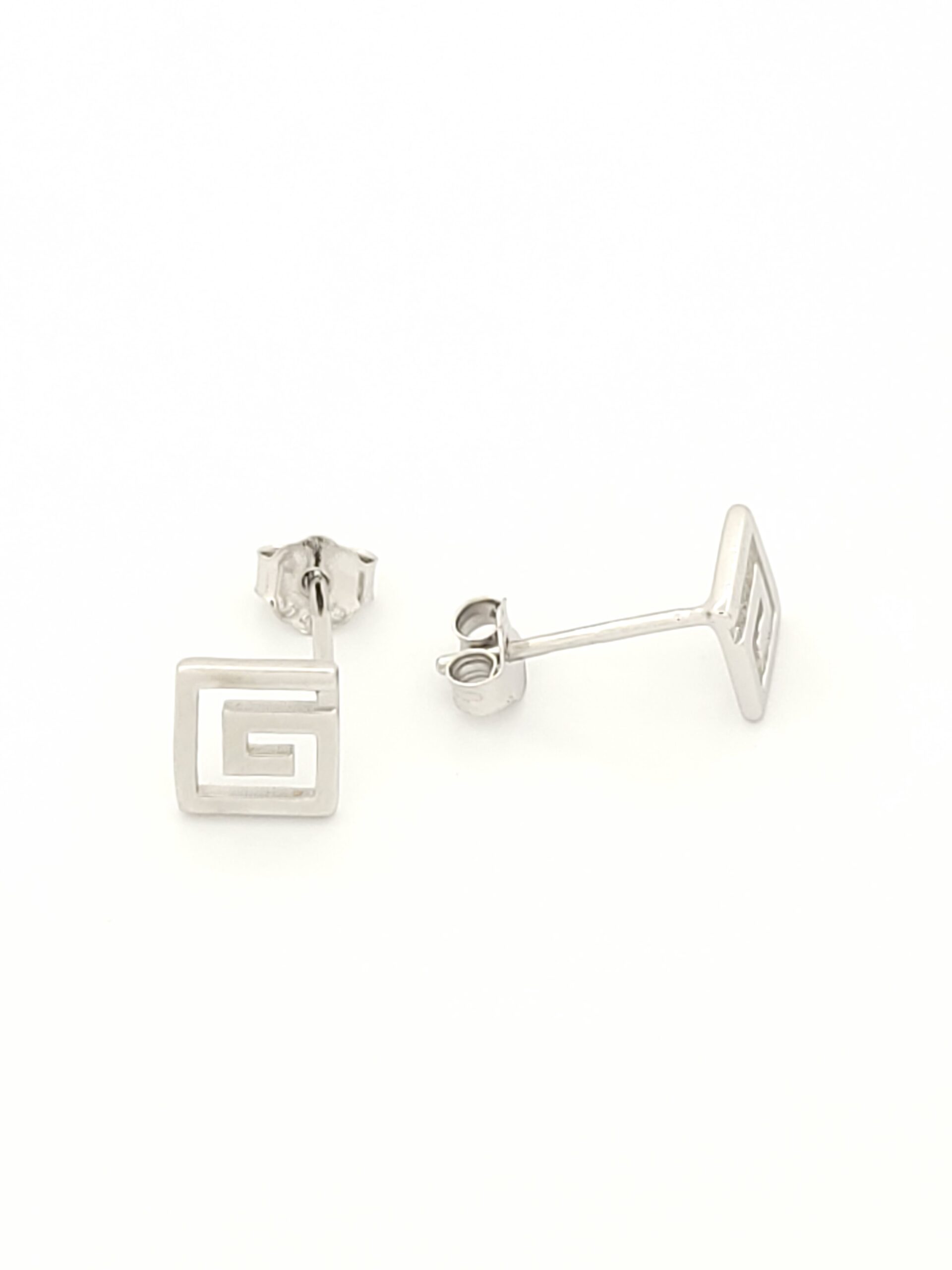 Ασημένια Γυναικεία Σκουλαρίκια Καρφωτά, Με Μαίανδρο