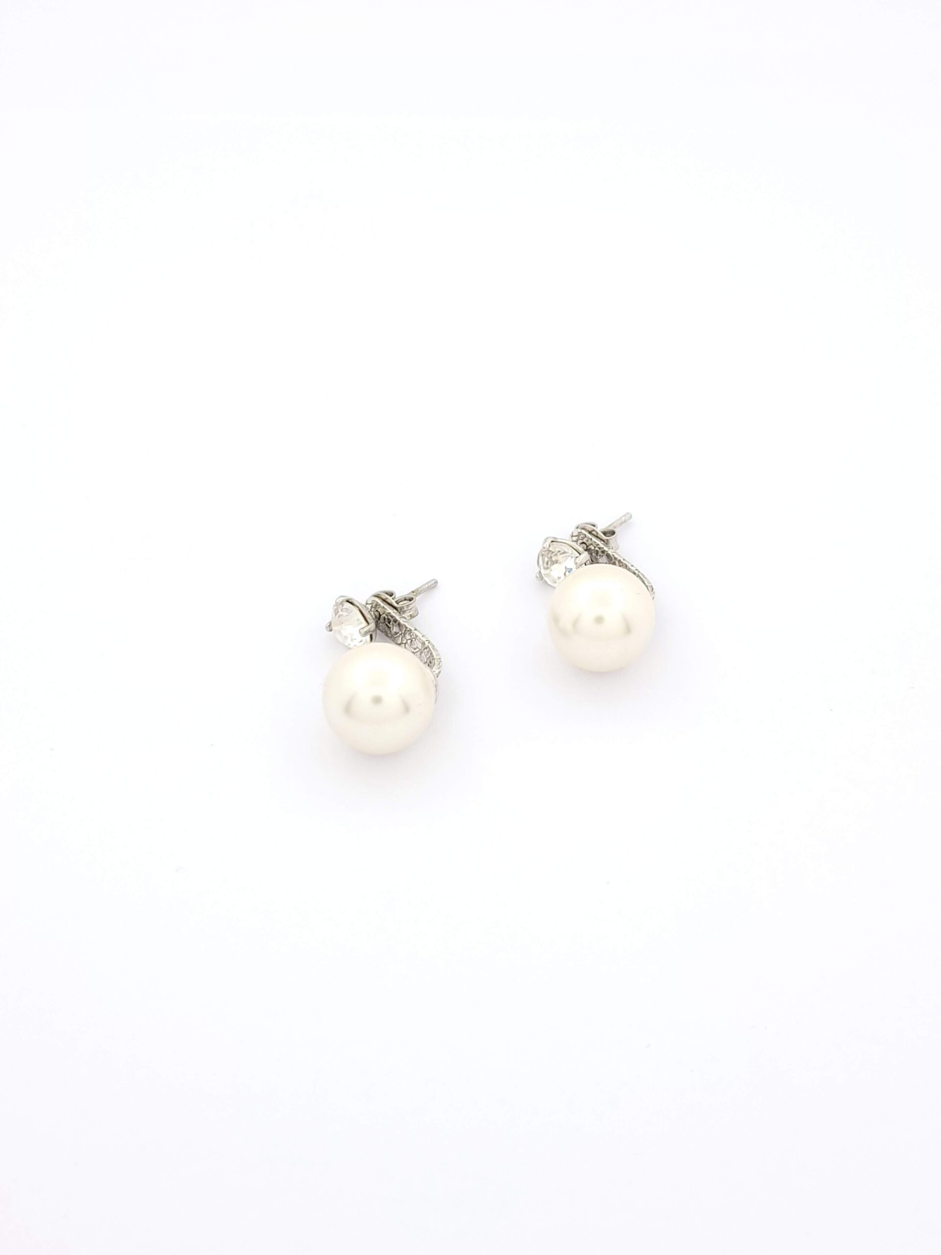 Ασημένια Γυναικεία Σκουλαρίκια Κρεμαστά Της Exis, Με Ζιργκόν Και Μαργαριτάρι κωδ.102494