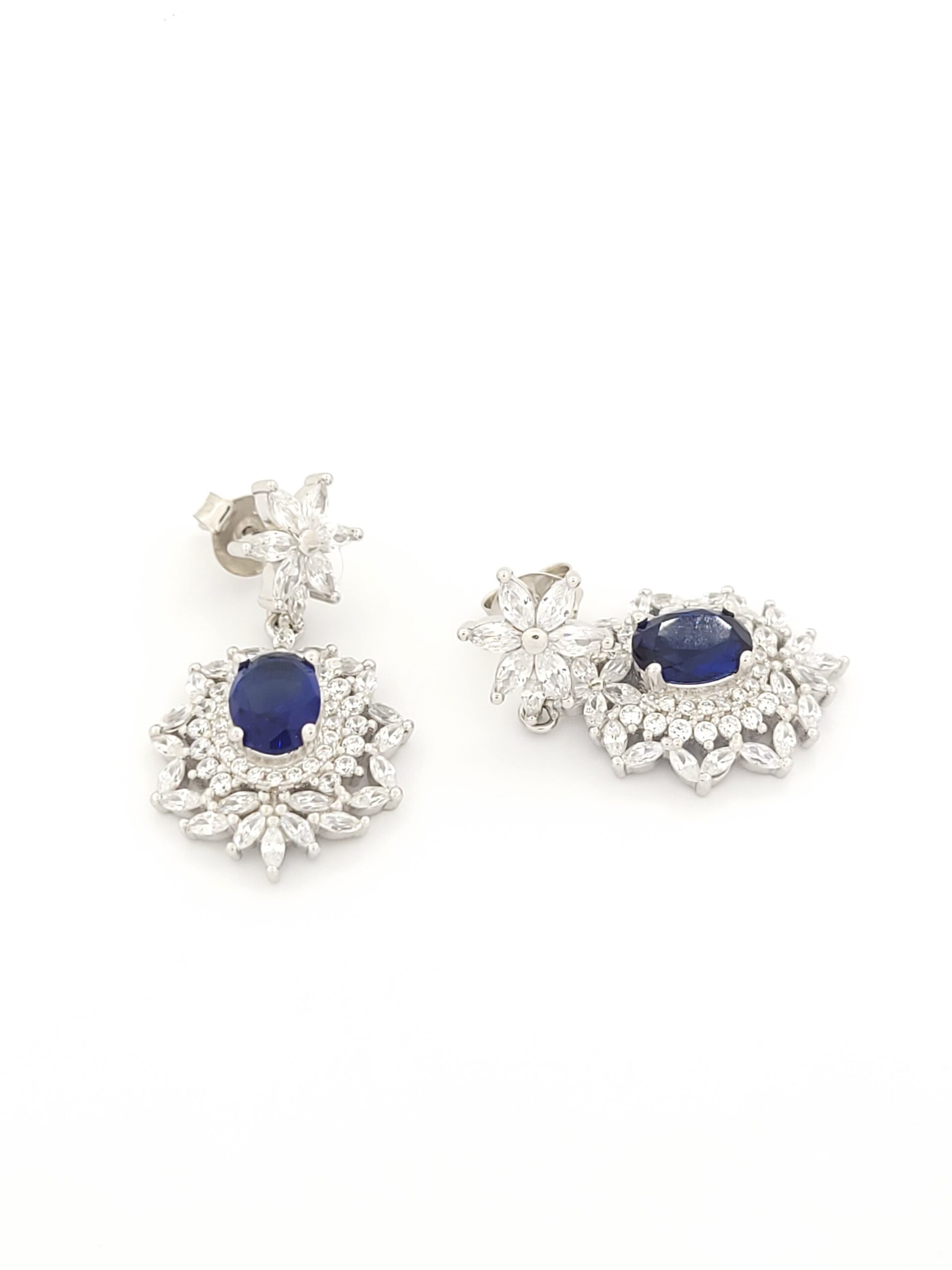 Ασημένια Γυναικεία Σκουλαρίκια Κρεμαστά, Με Μπλε Και Λευκά Ζιργκόν
