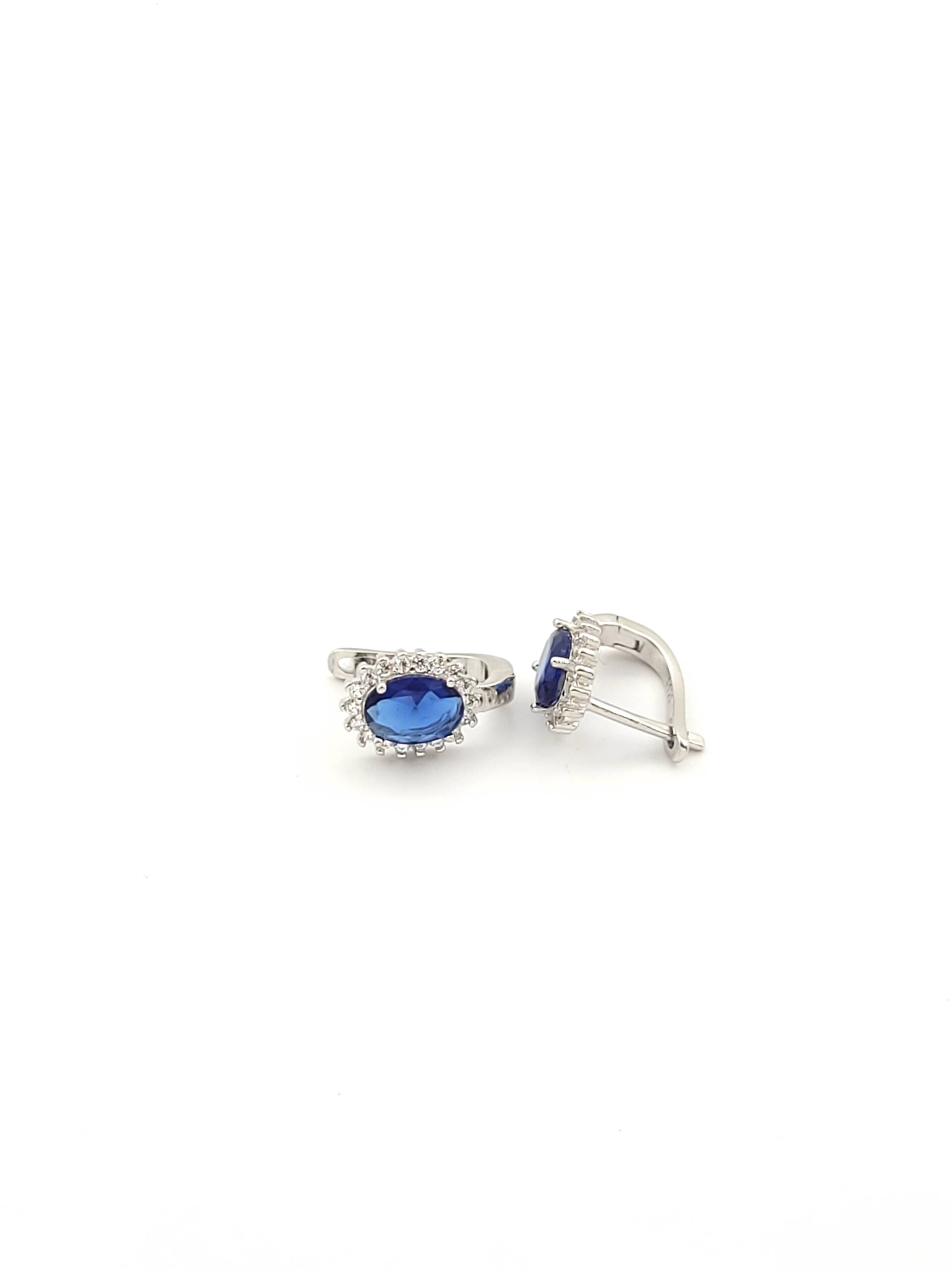 Ασημένια Γυναικεία Σκουλαρίκια Κρεμαστά της Luxor, Οβάλ Ροζέτα Με Λευκά Και Μπλε Ζιργκόν