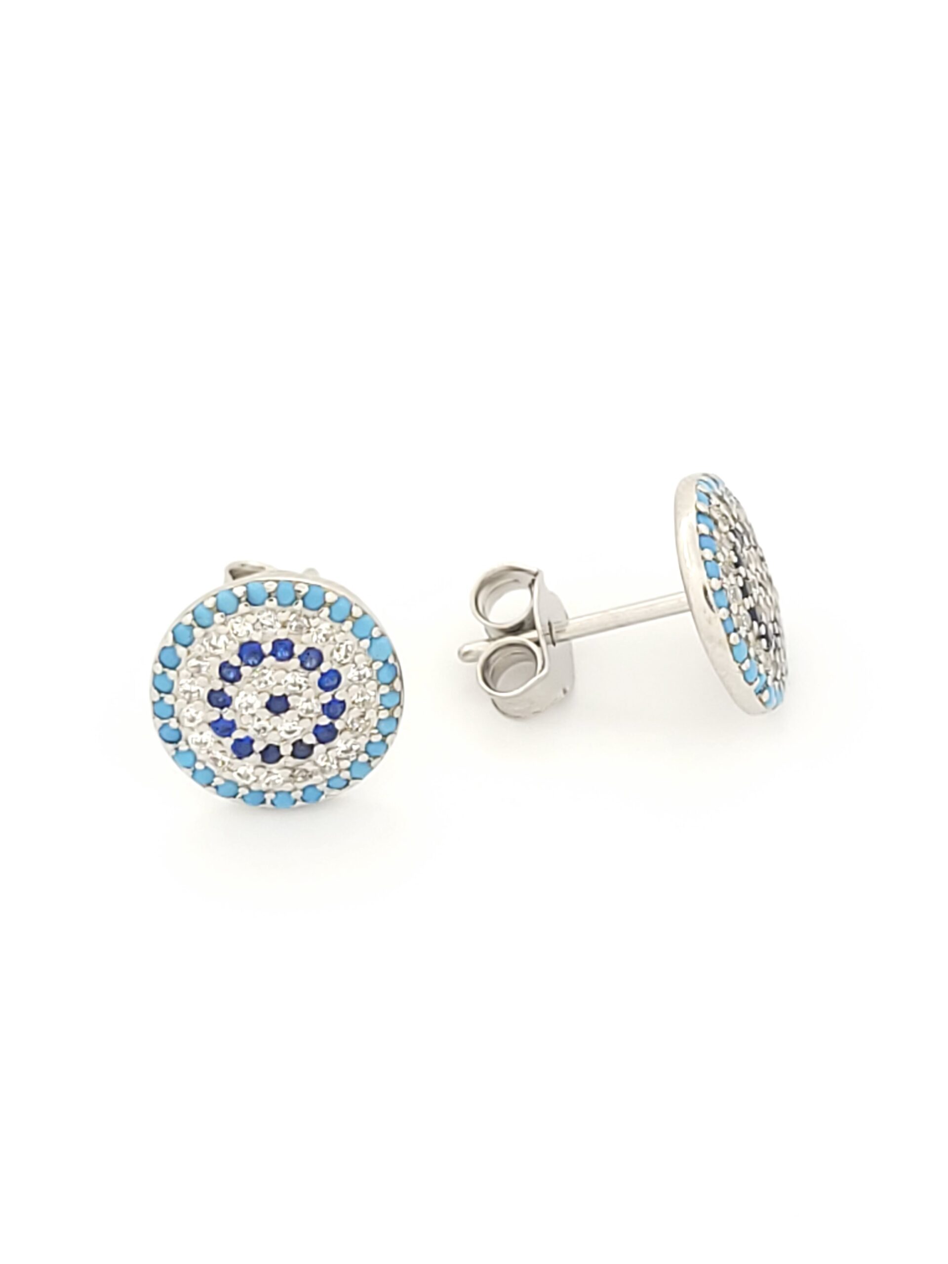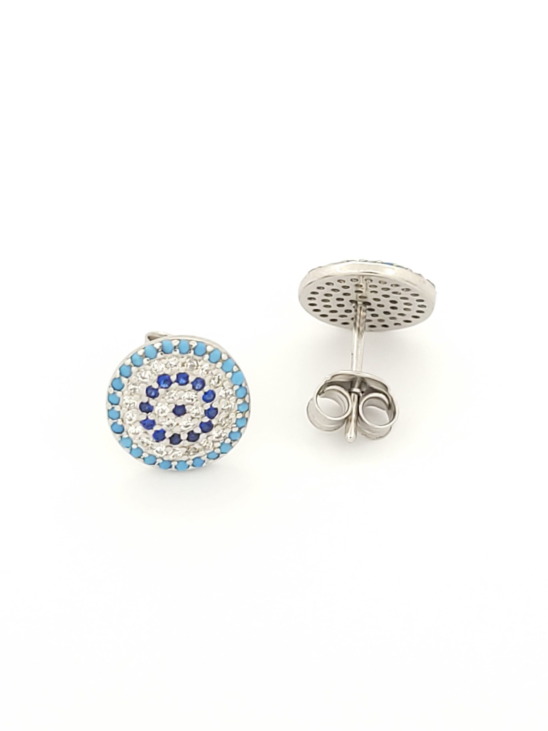 Ασημένια Γυναικεία Σκουλαρίκια-Ματάκι Καρφωτά Marakis, Με Πολύχρωμα Ζιργκόν κωδ.106620