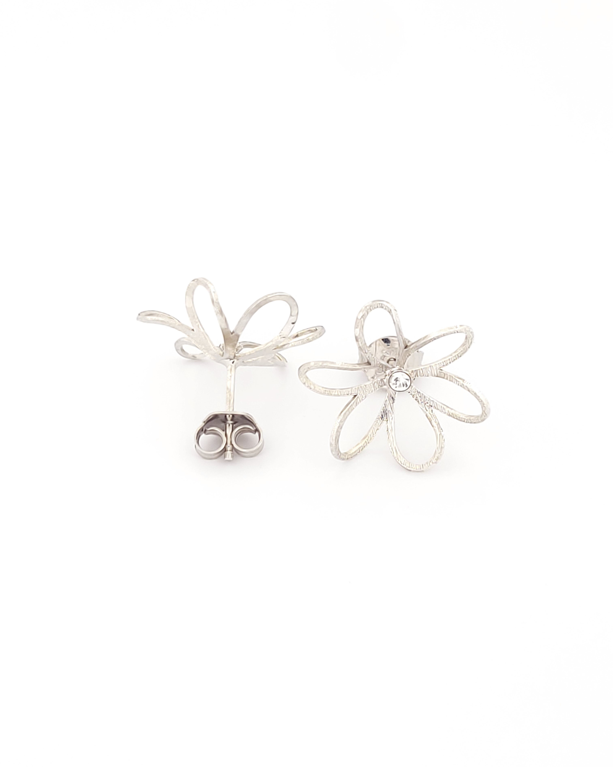 Ασημένια Γυναικεία Σκουλαρίκια Καρφωτά, Λουλούδι Με Λευκά Ζιργκόν