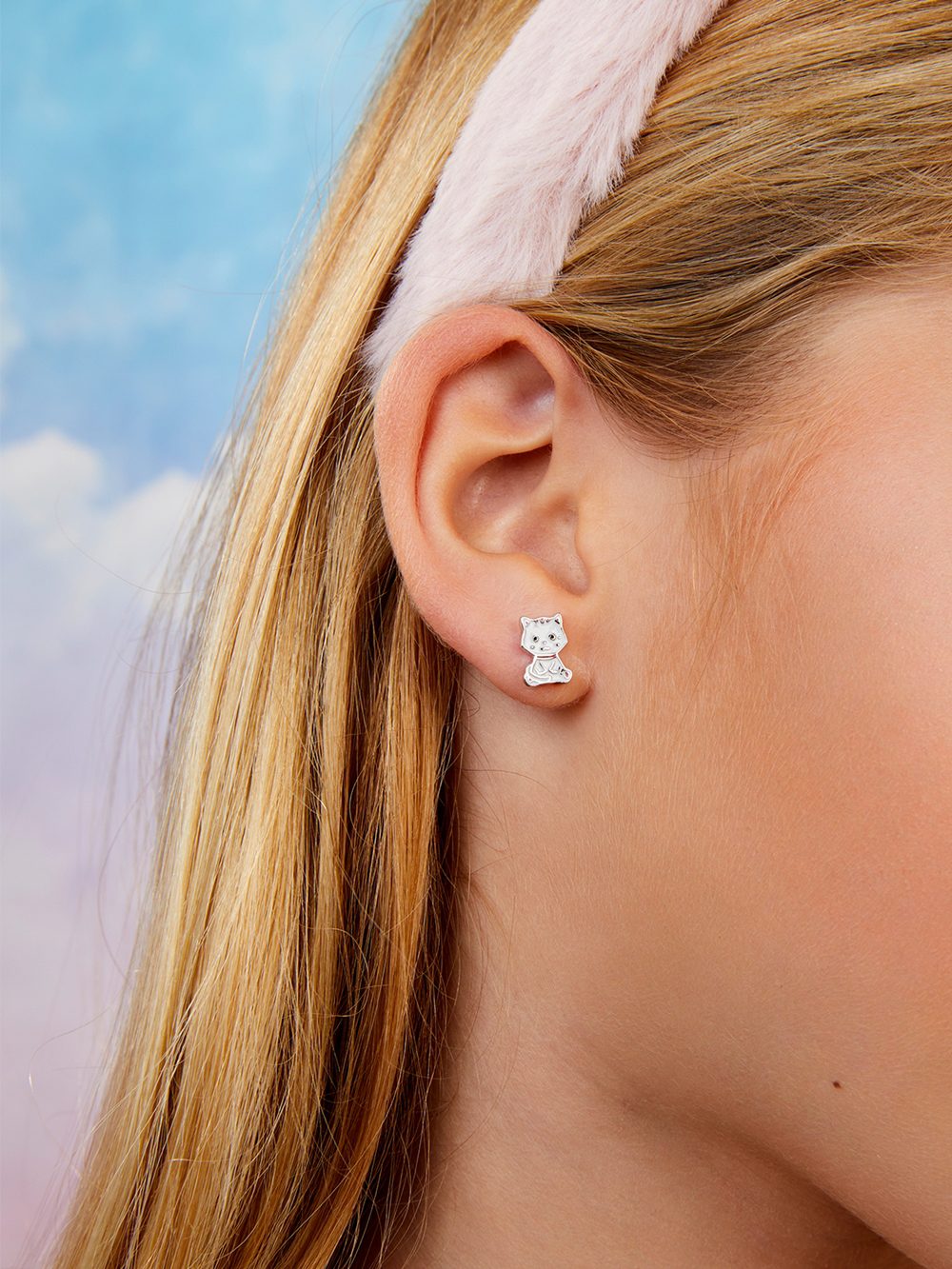 Ασημένια Παιδικά Σκουλαρίκια Καρφωτά Marea, Με Γάτα Με Σμάλτο