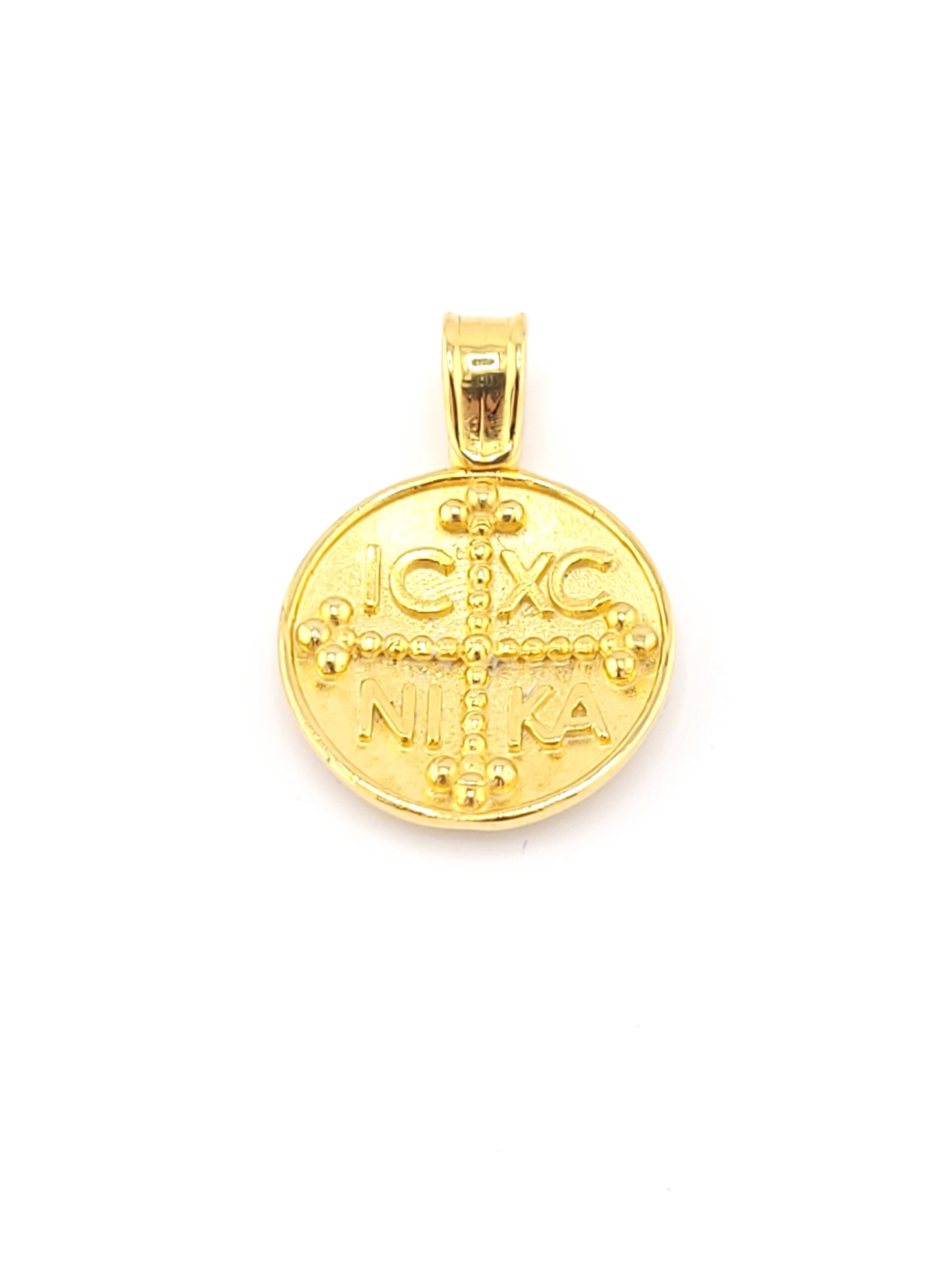 Χρυσό Κρεμαστό Διπλής Όψης Παναγίτσα K9, Με Κωνσταντινάτο κωδ.105273