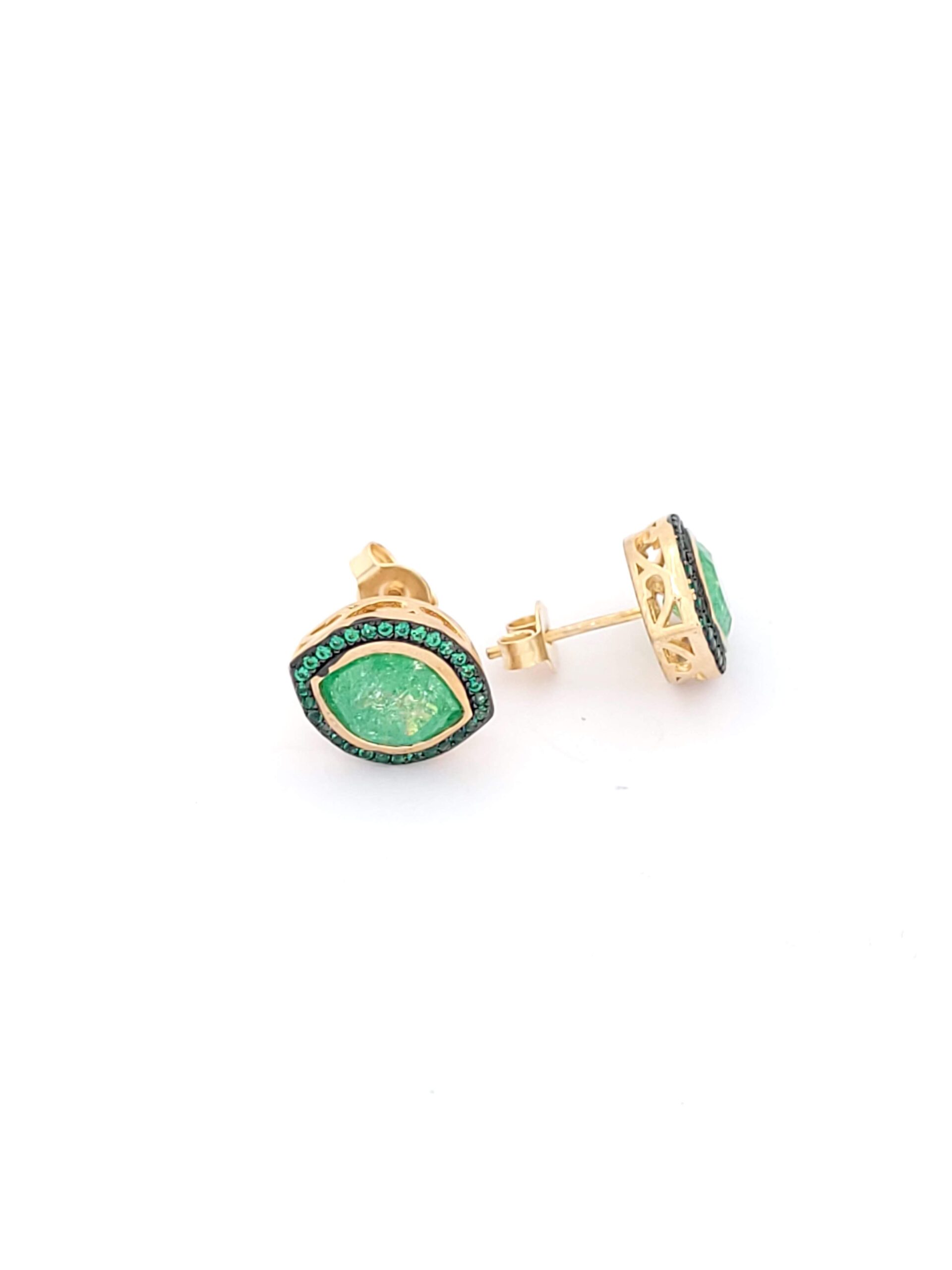 Ασημένια Ροζ Gold Γυναικεία Σκουλαρίκια Καρφωτά Της Silver Union, Με Πράσινο Ζιργκόν