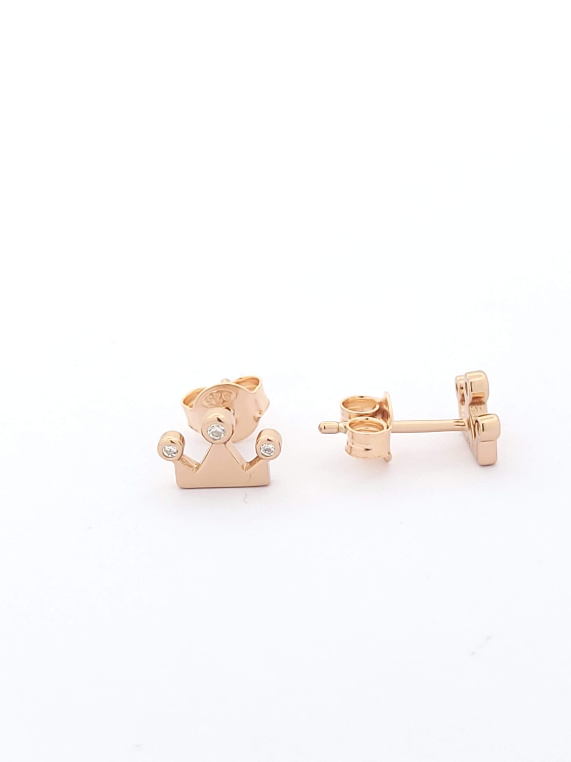 Ασημένια Ροζ Gold Γυναικεία Σκουλαρίκια Καρφωτά Κορώνα Της Silver Union, Με Ζιργκόν κωδ.04-05-2970