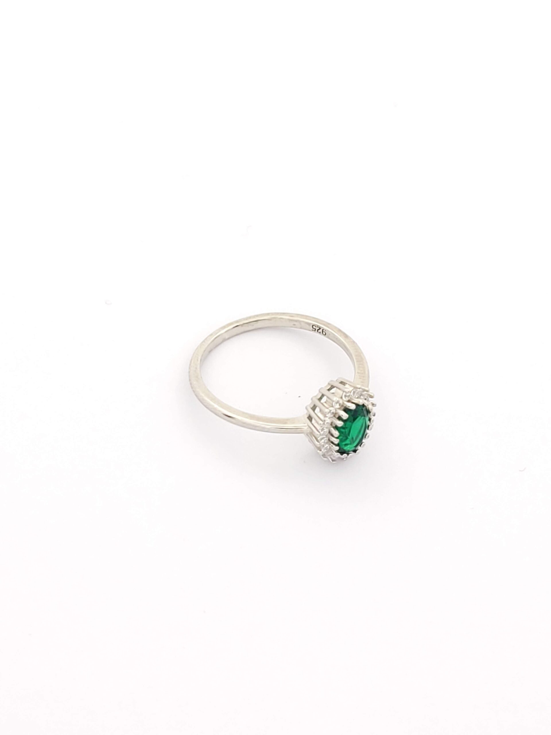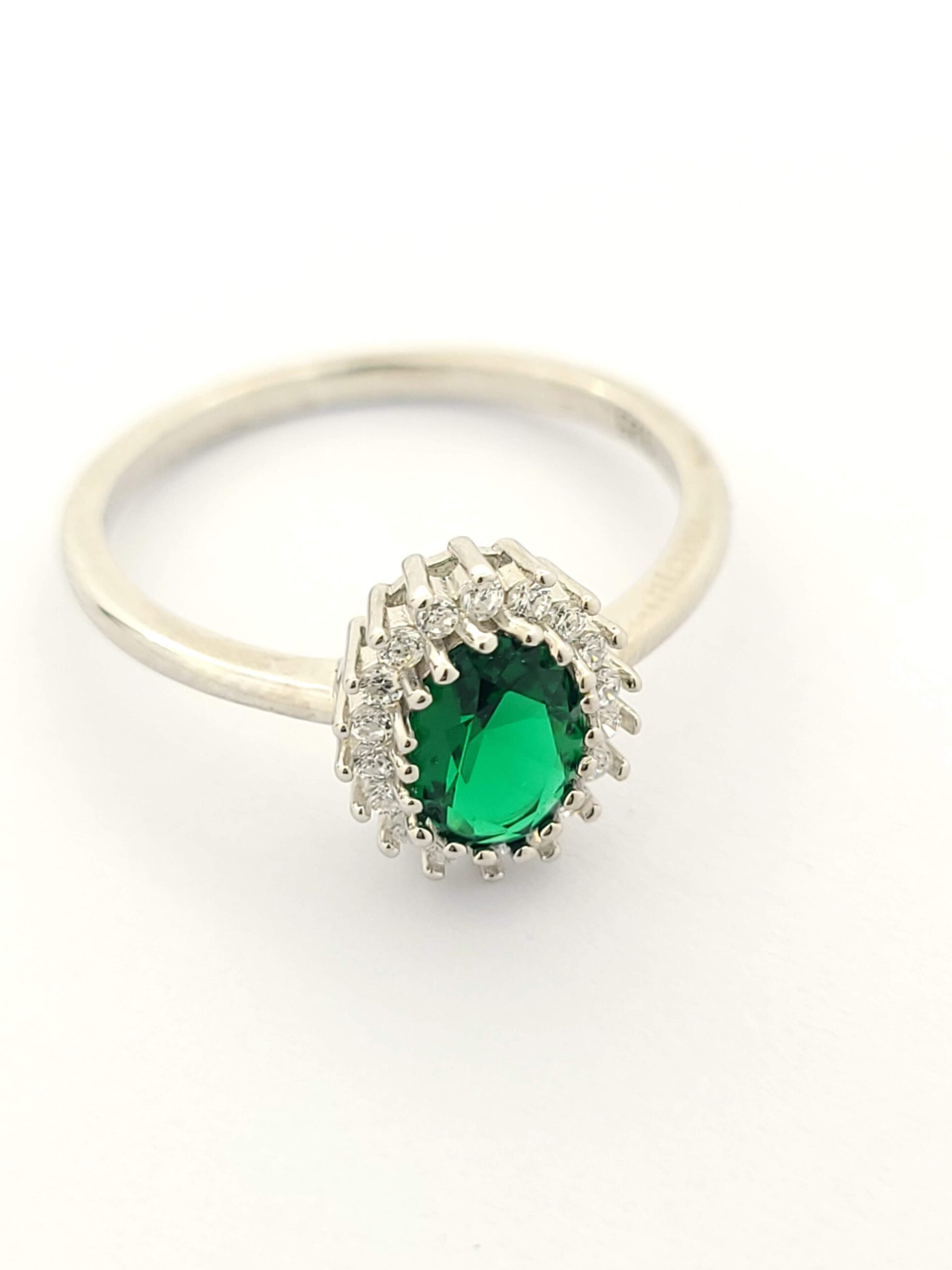 Ασημένιο Δαχτυλίδι Ροζέτα με Πράσινο και Άσπρα Ζιργκόν