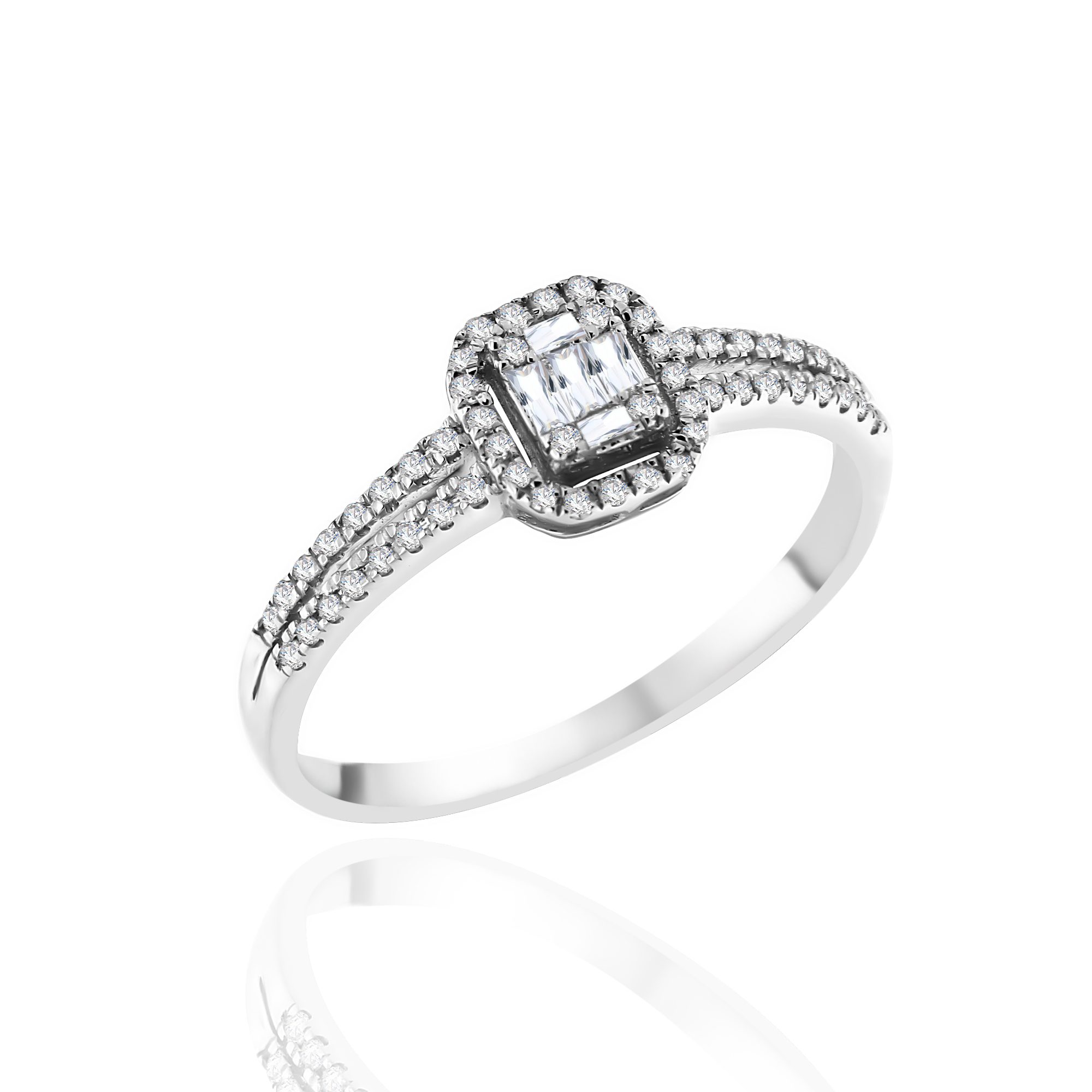 Λευκόχρυσο Γυναικείο Δαχτυλίδι Μονόπετρο Τετράγωνη Ροζέτα Κ18 MetronGold Με Διαμάντια