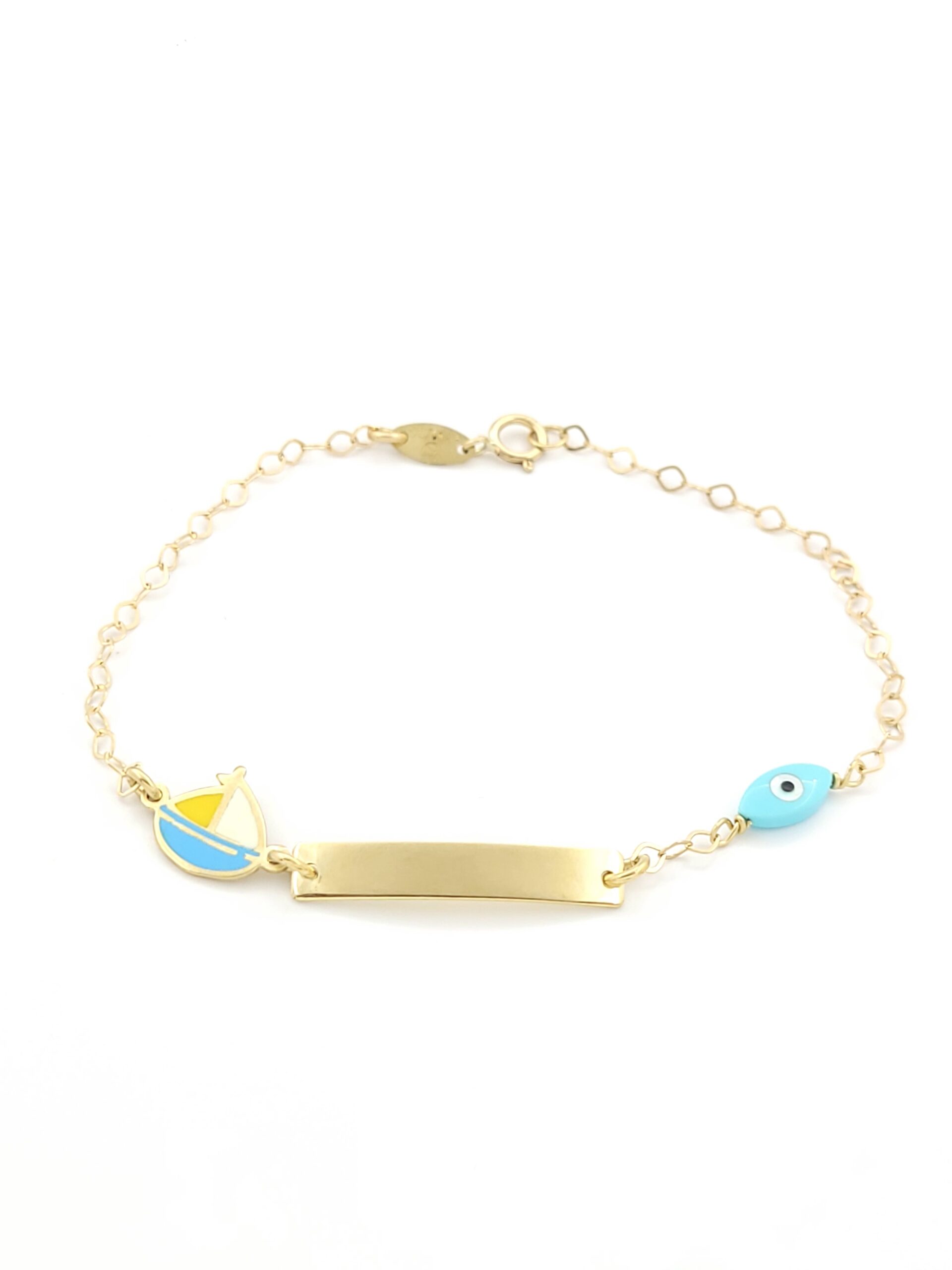 Χρυσό Παιδικό Βραχιόλι-Ταυτότητα Κ9, Με Ματάκι Και Καράβι Με Σμάλτο κωδ.108865