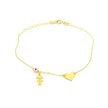 Ασημένιο Επιχρυσωμένο Γυναικείο Βραχιόλι Με Κοριτσάκι, Ροζ Ματάκι Και Καρδιά κωδ.108705