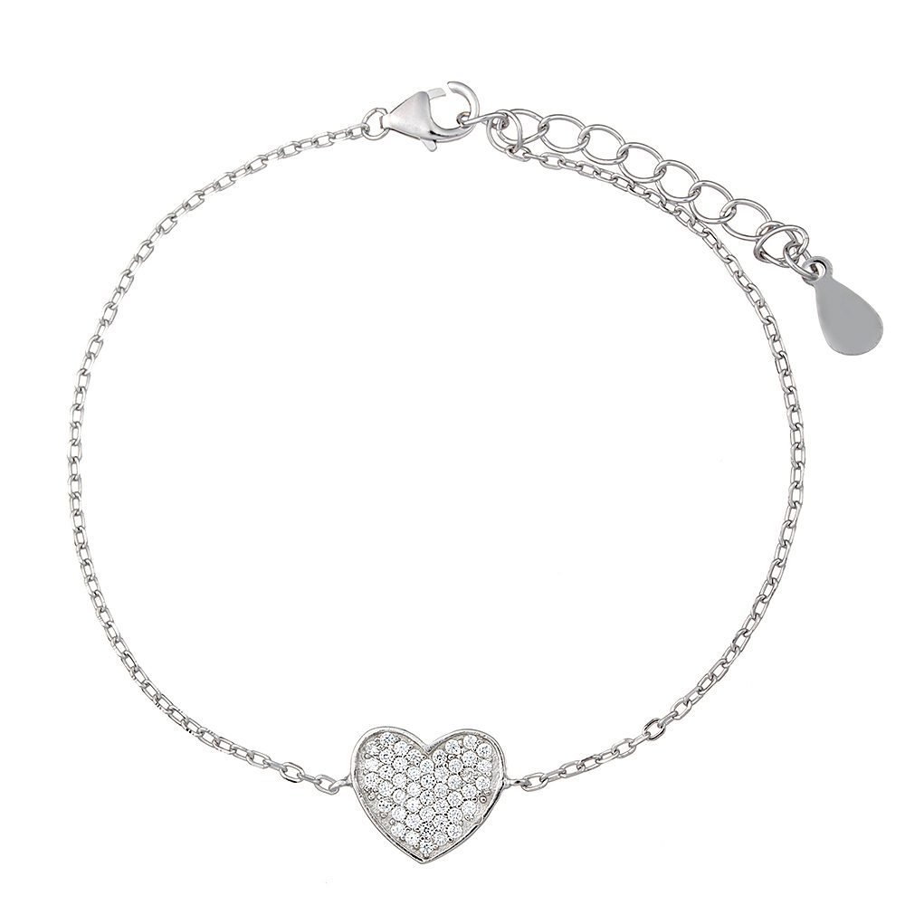 Ασημένιο Γυναικείο Βραχιόλι, Με Καρδιά Και Λευκά Ζιργκόν κωδ.17222-1