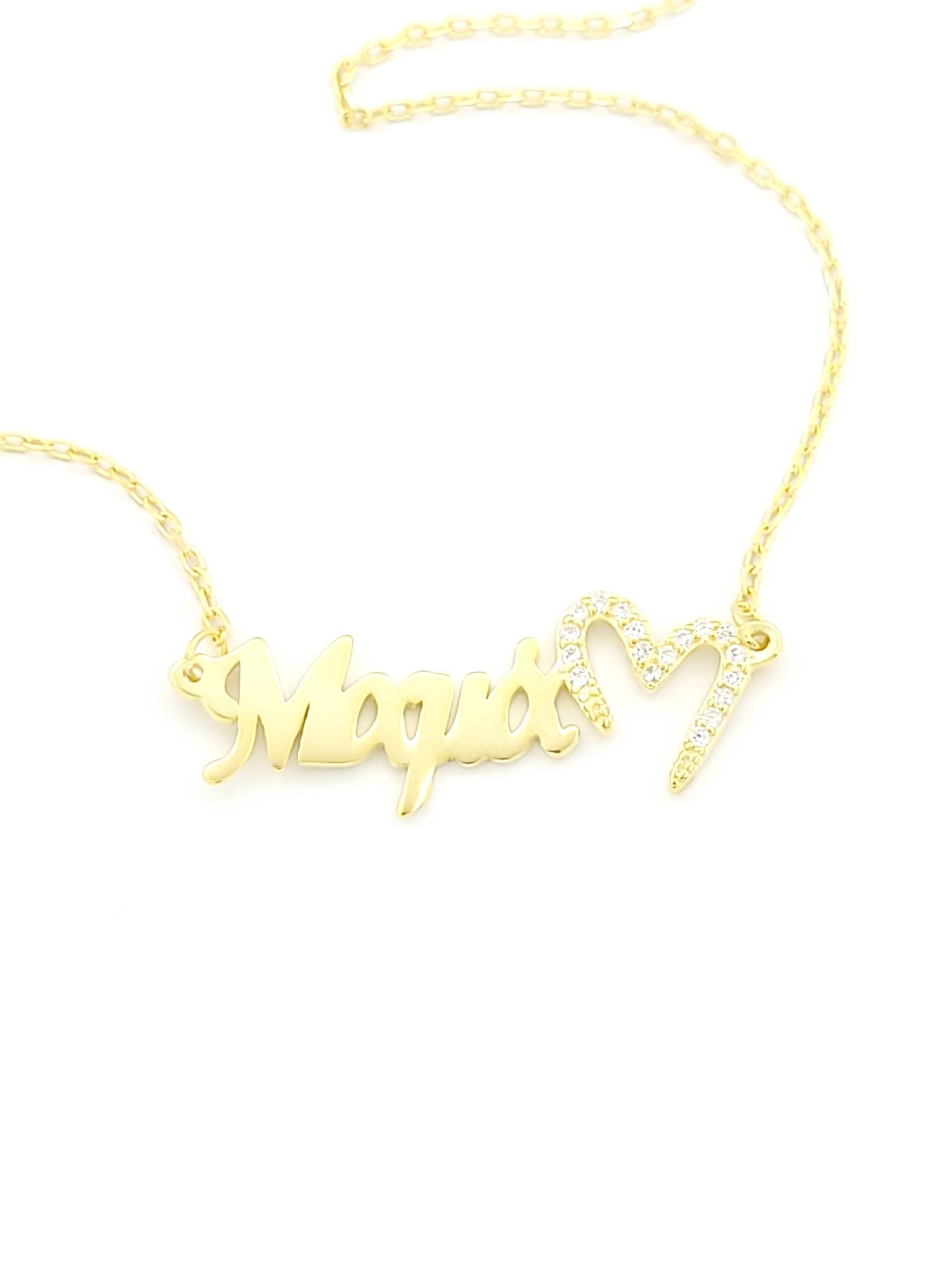 Ασημένιο Επιχρυσωμένο Γυναικείο Κολιέ “Μαμά”, Με Καρδιά Και Λευκά Ζιργκόν