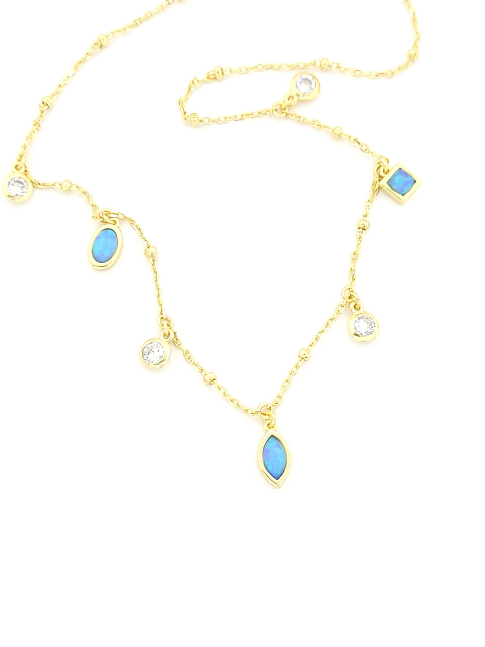 Ασημένιο Επιχρυσωμένο Γυναικείο Κολιέ, Με Κρεμαστά Στοιχεία Με Μπλέ Οπάλιο Και Λευκά Ζιργκόν κωδ.04-07-2203