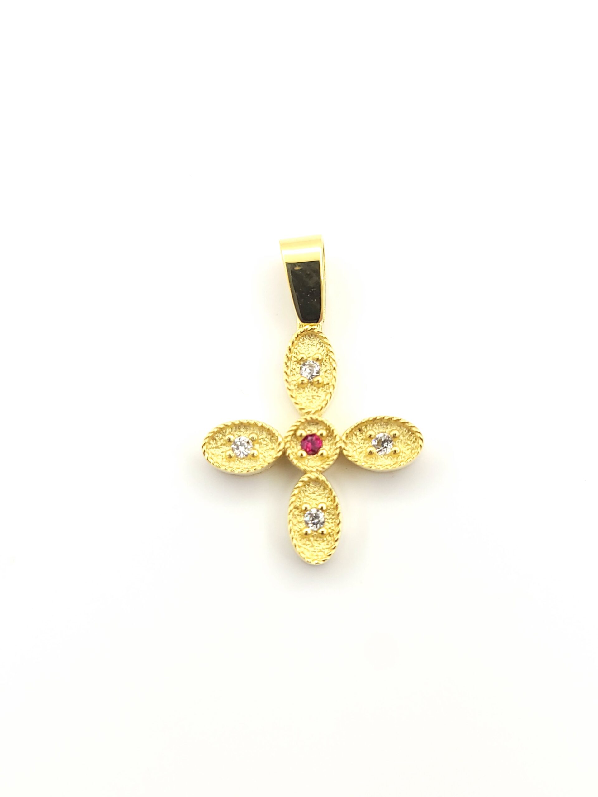 Χρυσός Γυναικείος Χειροποίητος Ματ Σταυρός Κ18 , Με Διαμάντι κωδ.107935