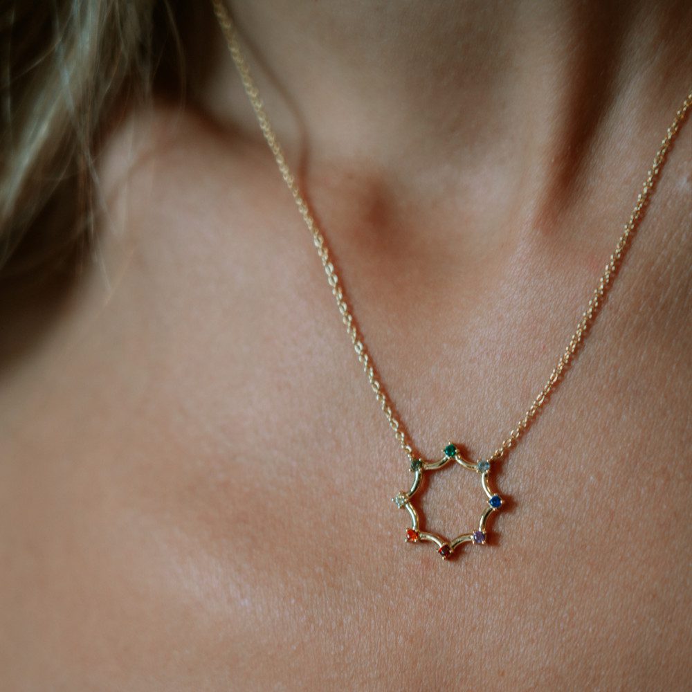 Ασημένιο Επιχρυσωμένο Γυναικείο Κρεμαστό JCou Rainbow με Πολύχρωμα Ζιργκόν