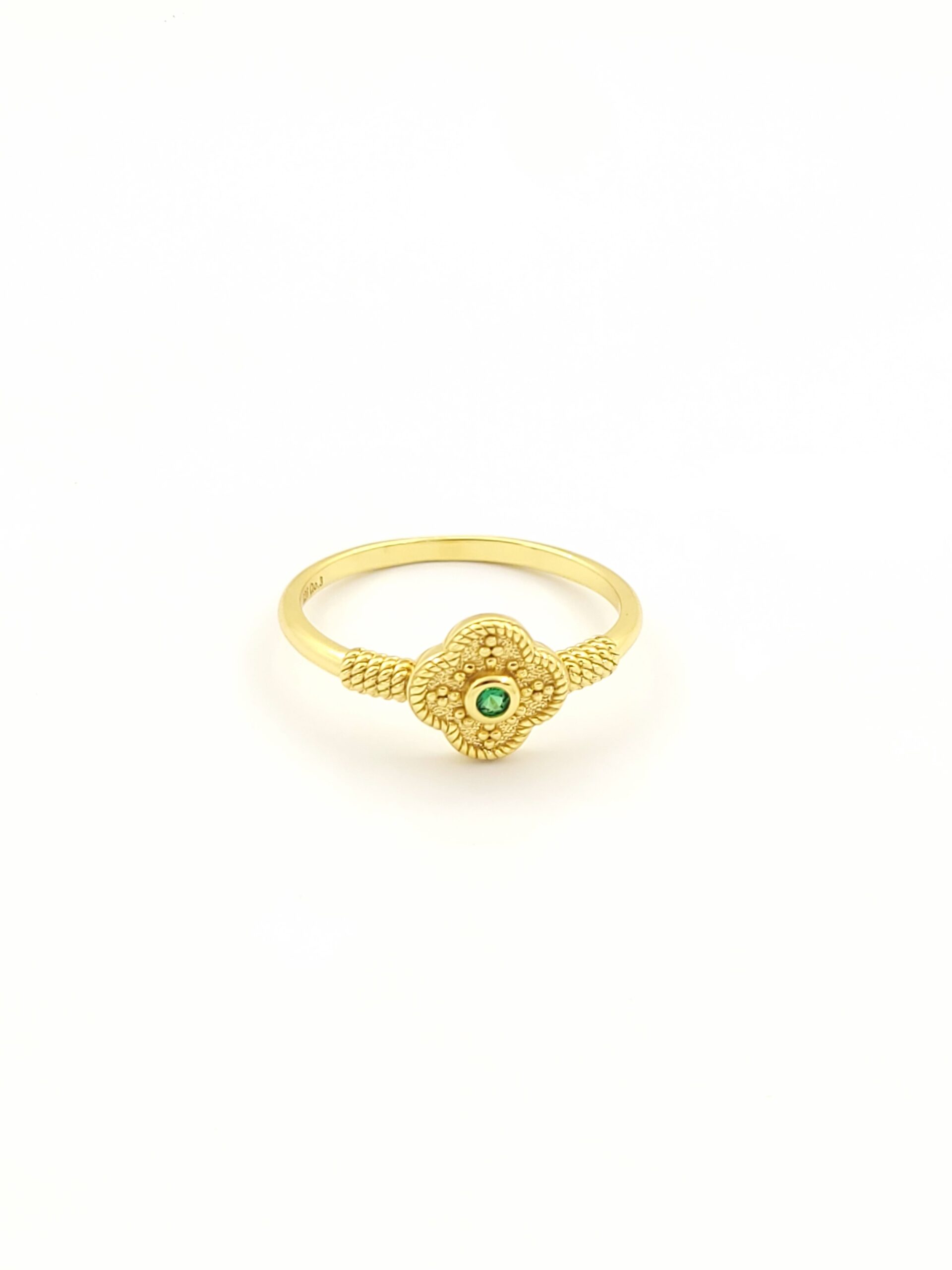 Ασημένιο Επιχρυσωμένο Γυναικείο Βυζαντινό Δαχτυλίδι Με Πράσινο Ζιργκόν