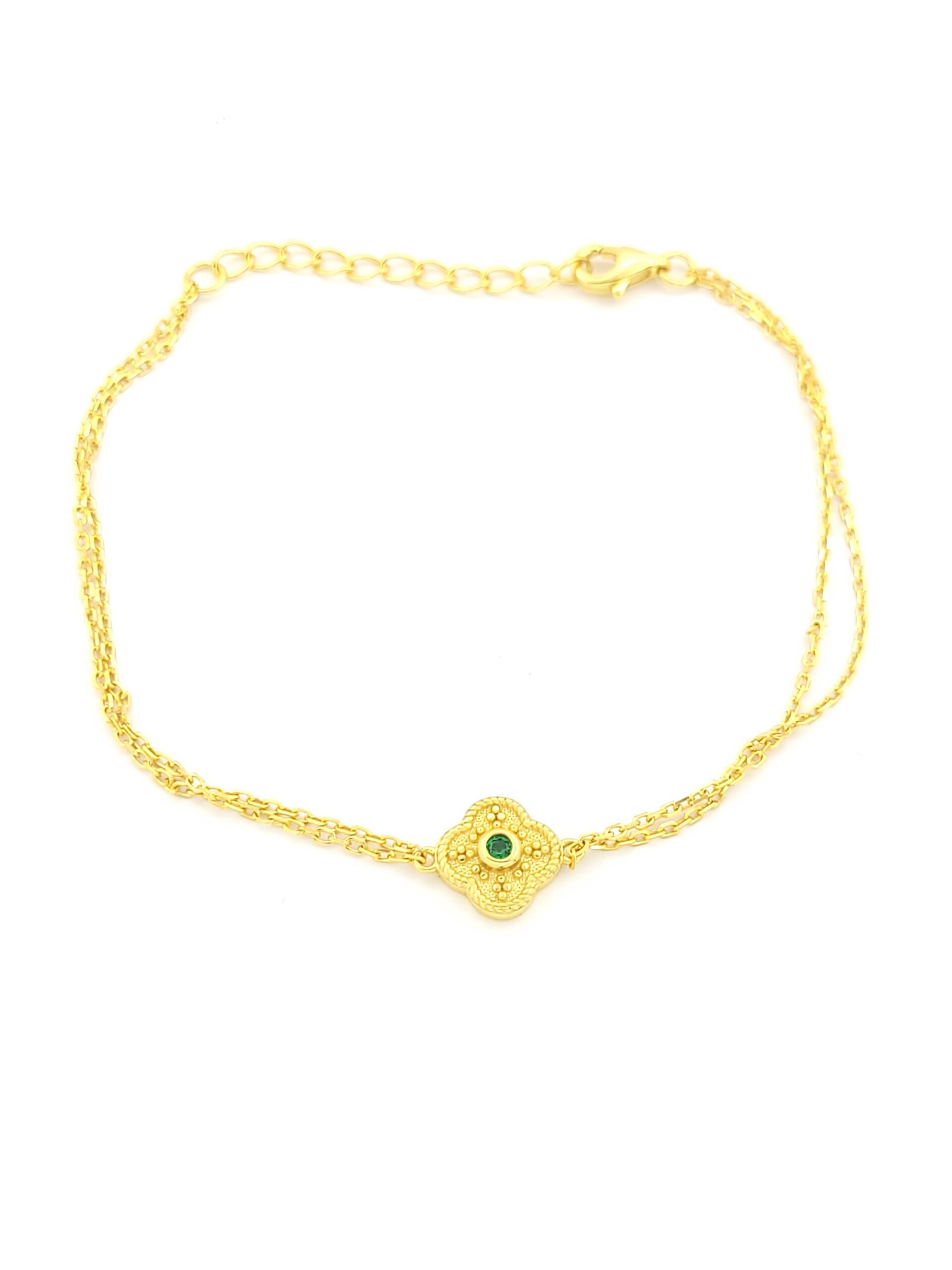 Ασημένιο Επιχρυσωμένο Γυναικείο Βραχιόλι, Βυζαντινό Με Διπλή Αλυσίδα Και Πράσινο Ζιργκόν κωδ.04-06-1892