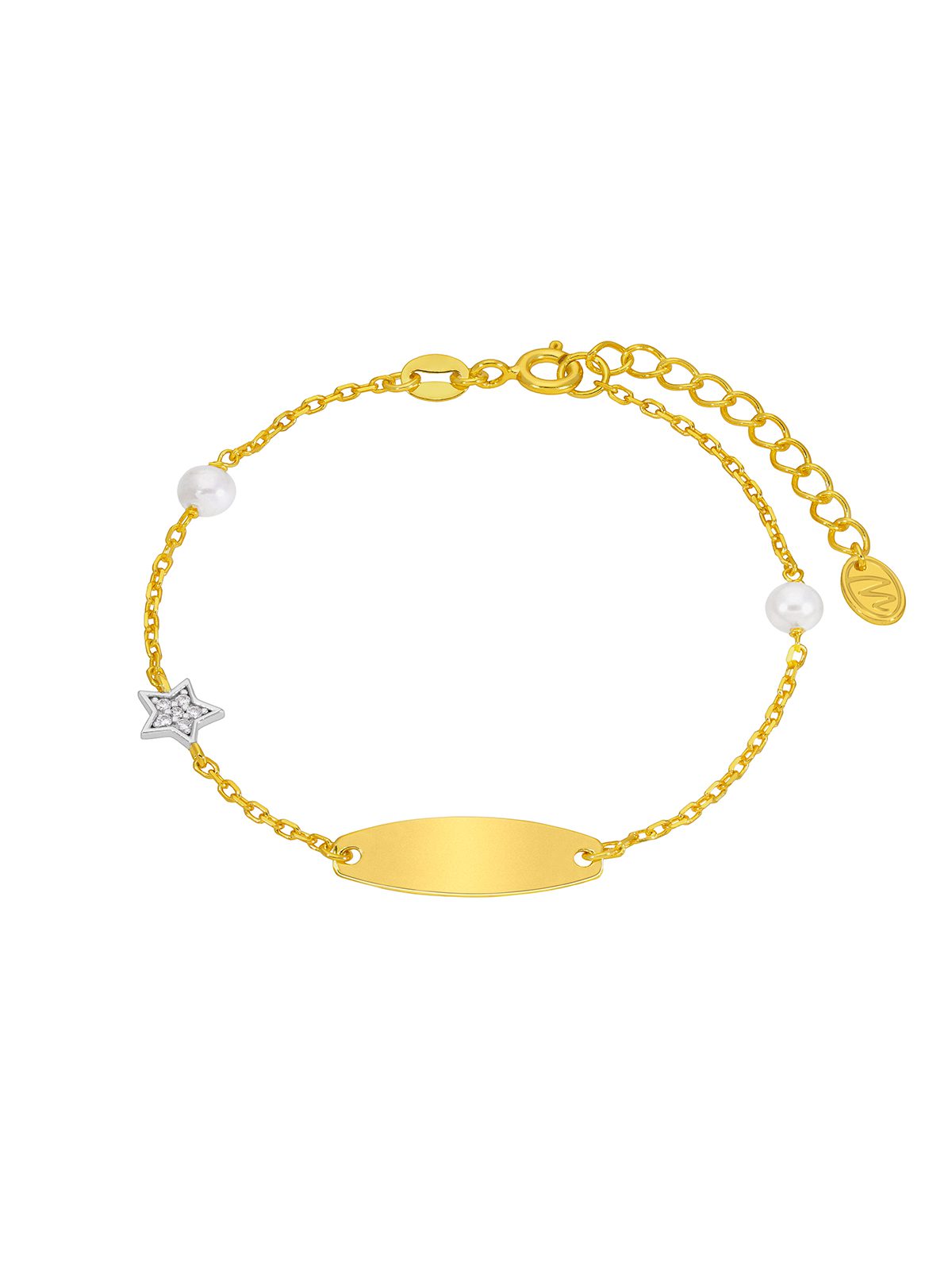 Ασημένιο Επιχρυσωμένο Παιδικό Βραχιόλι-Ταυτότητα Marea, Με Αστέρι, Πέρλες Και Λευκά Ζιργκόν