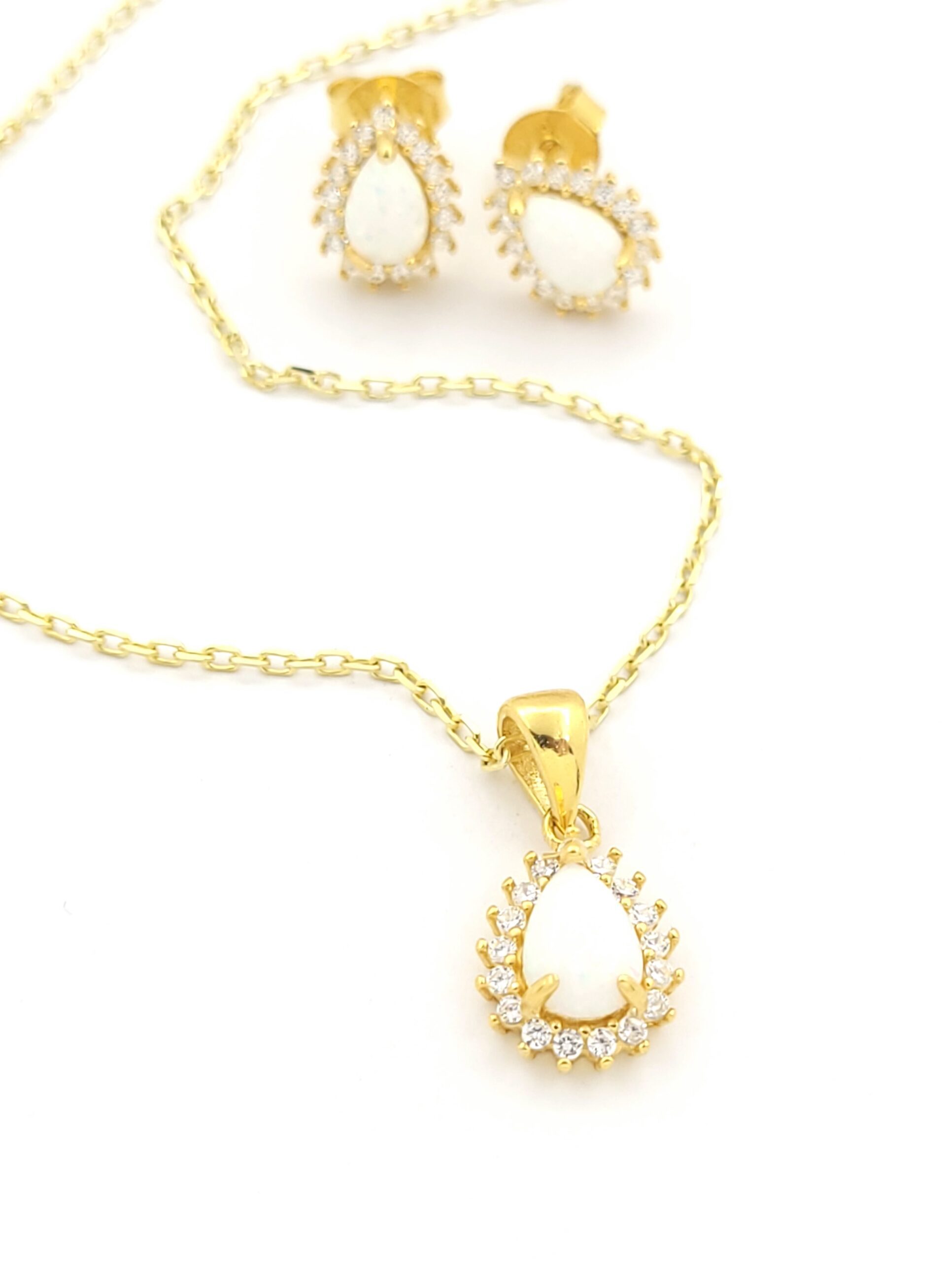 Ασημένιο Επιχρυσωμένο Σετ , Με Λευκό Οπάλιο Και Λευκά Ζιργκόν κωδ.107780