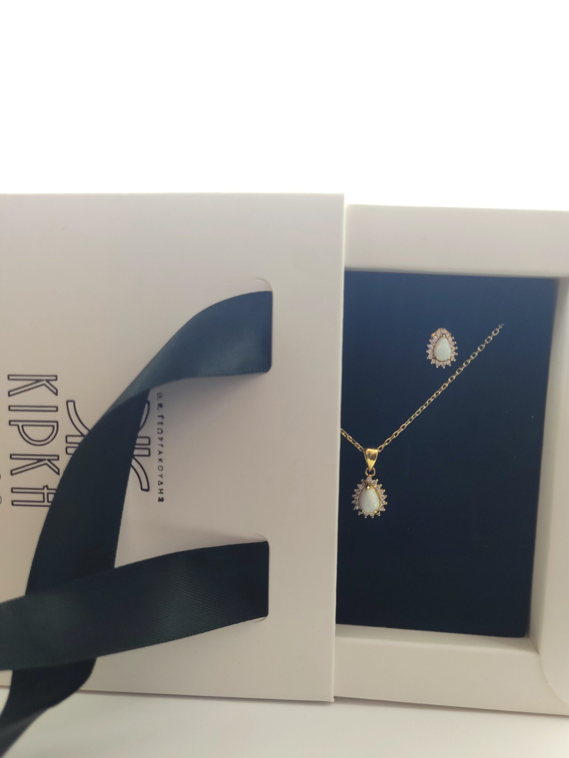 Ασημένιο Επιχρυσωμένο Σετ , Με Λευκό Οπάλιο Και Λευκά Ζιργκόν