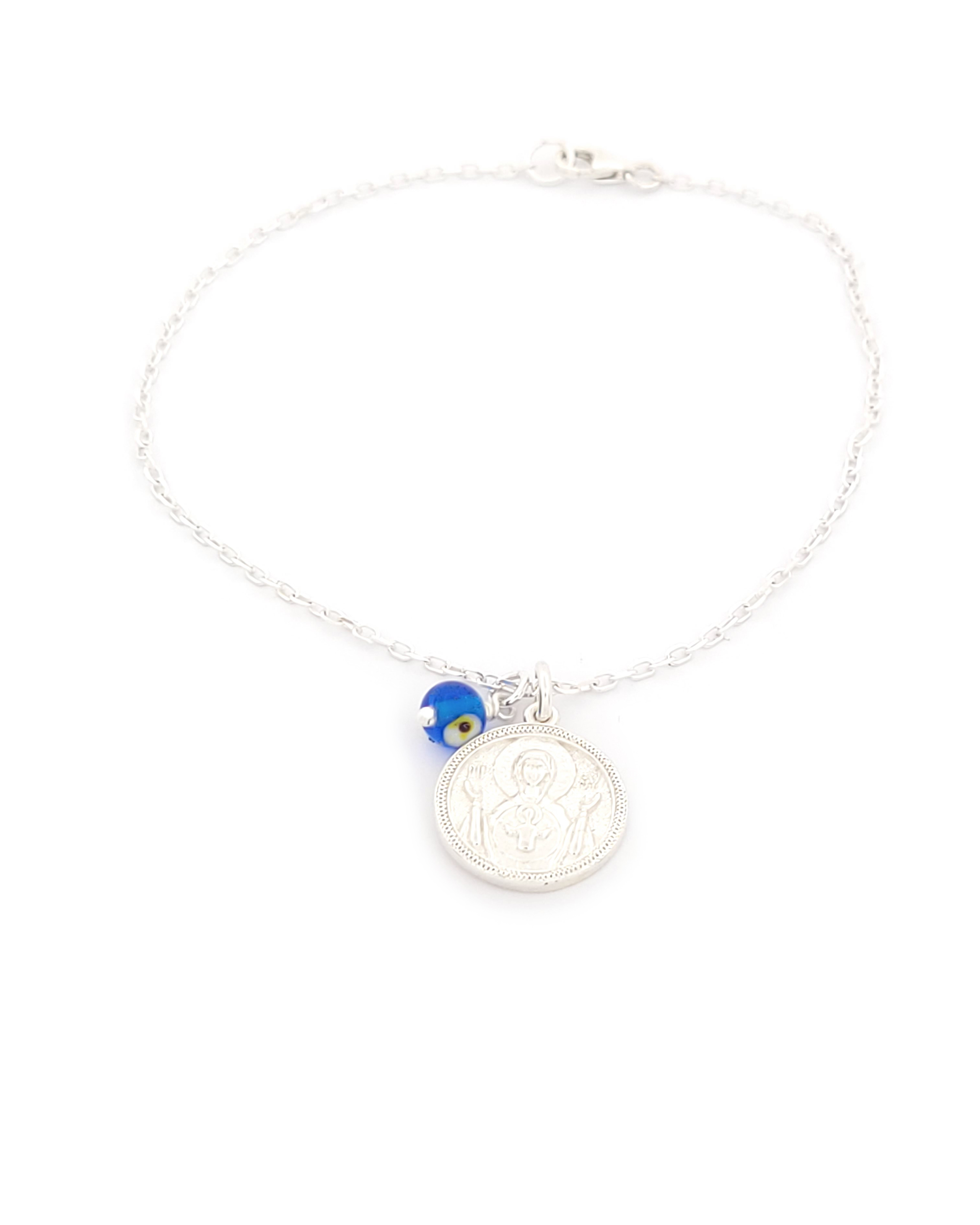 Ασημένιο Δίχρωμο Γούρι Με Ματάκι, Παναγίτσα Και Αναπαράσταση Του Άγιου Χριστοφόρου κωδ.109633