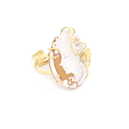 Ασημένιο Επίχρυσο Γυναικείο Δαχτυλίδι Cameo Με Φιγούρα Γυναίκας