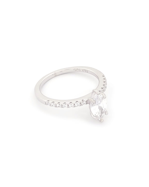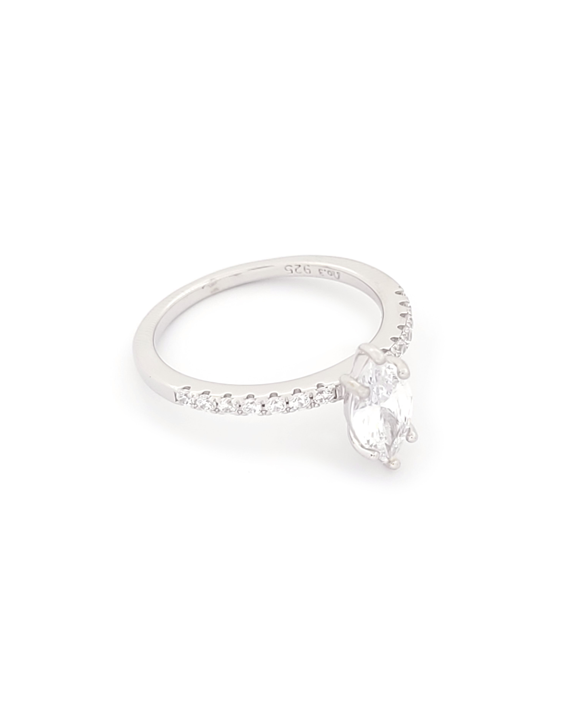 Ασημένιο Γυναικείο Δαχτυλίδι Μονόπετρο Σε Σχήμα Marquise, Με Λευκά Ζιργκόν