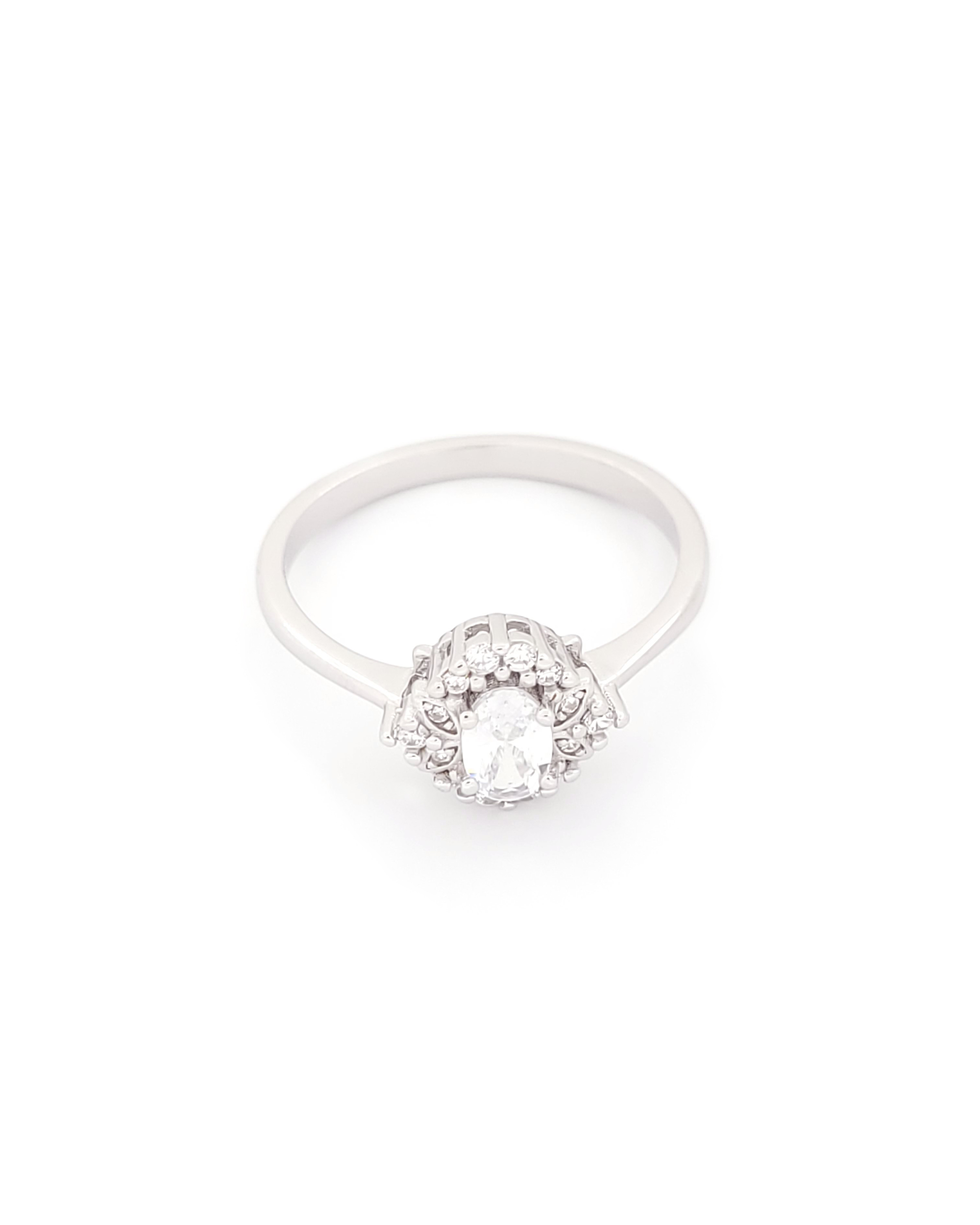 Ασημένιο Γυναικείο Δαχτυλίδι Ροζέτα, Με Λευκά Ζιργκόν