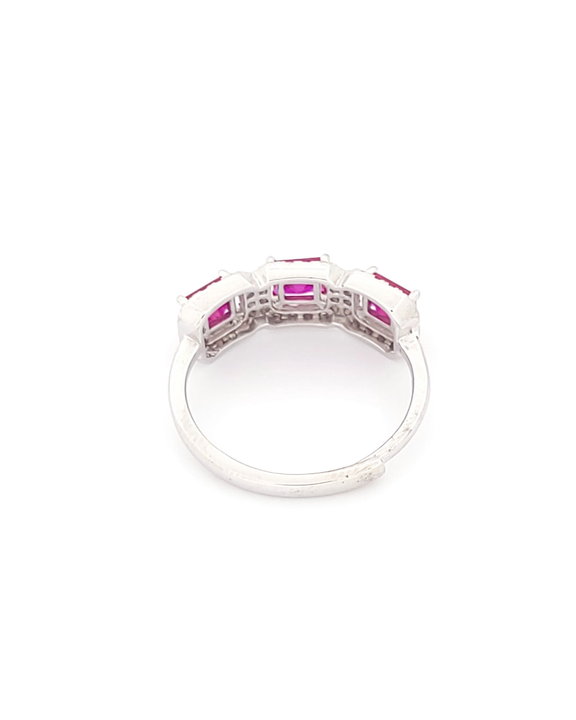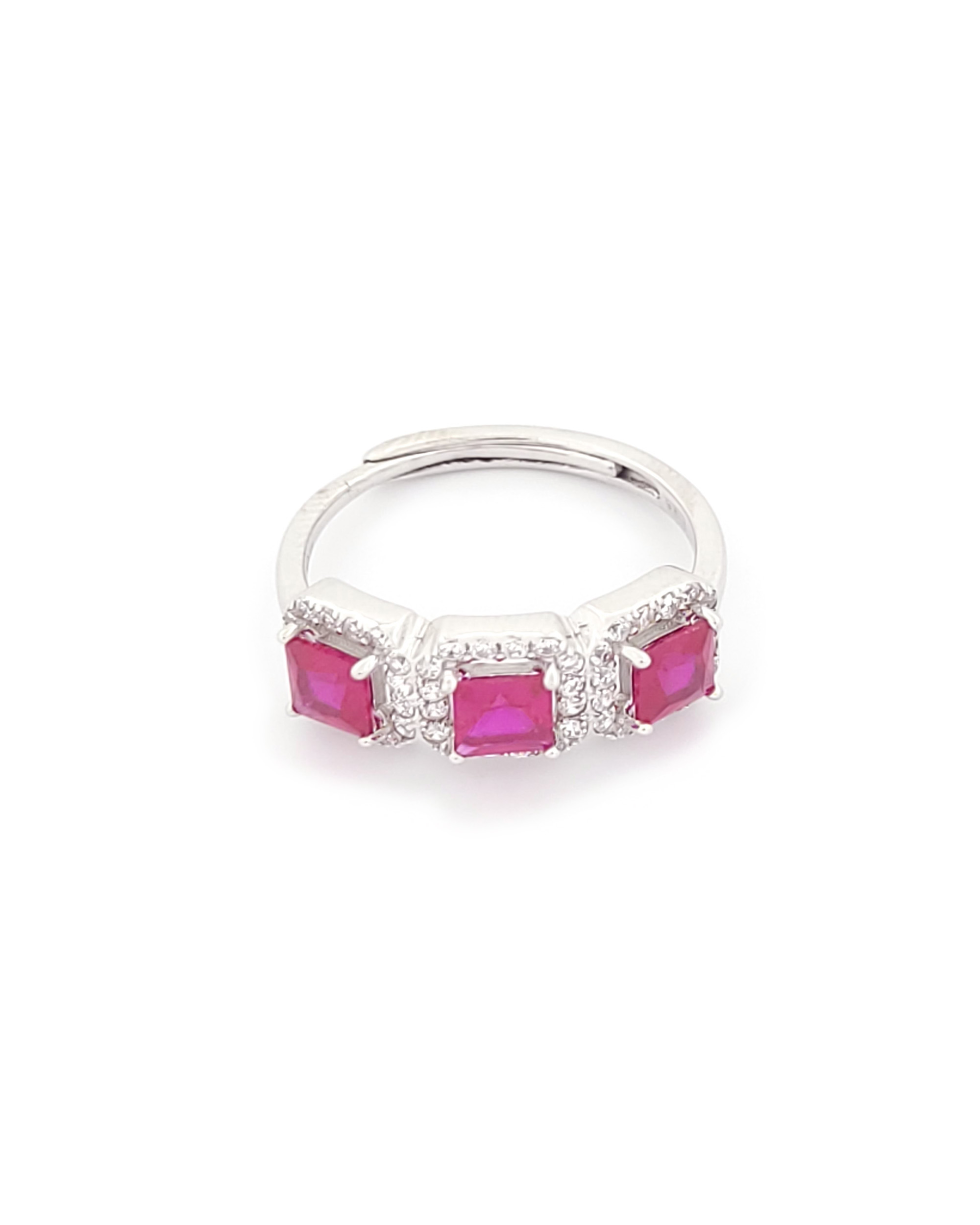 Ασημένιο Γυναικείο Δαχτυλίδι Τριπλή Ροζέτα, Με Λευκά Και Φουξ Ζιργκόν