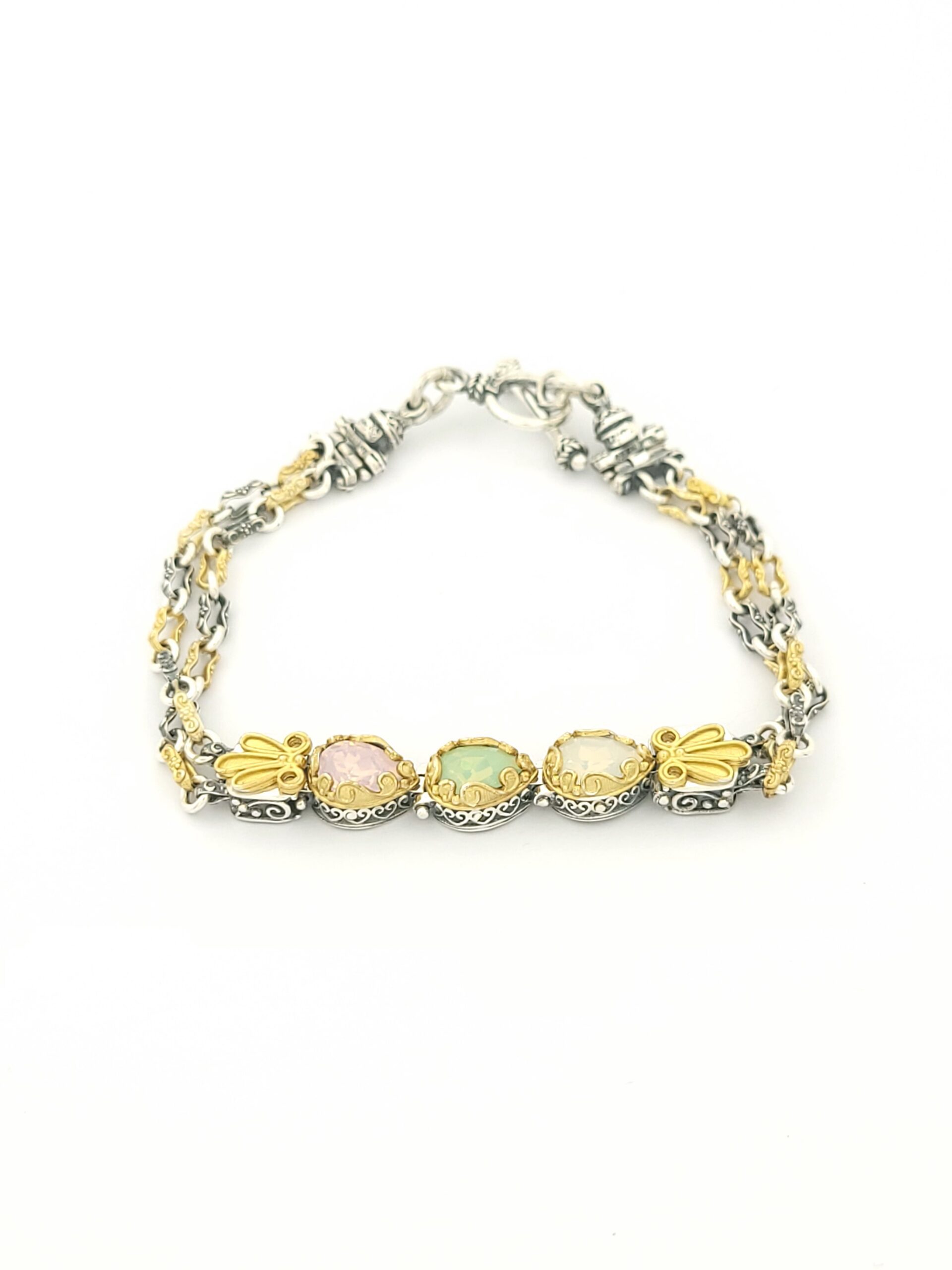 Ασημένιο Δίχρωμο Γυναικείο Βραχιόλι Με Διπλή Αλυσίδα Dimitrios-Exclusive Mε Πολύχρωμους Κρυστάλλους Σε Σχήμα Δάκρυ κωδ.B441C