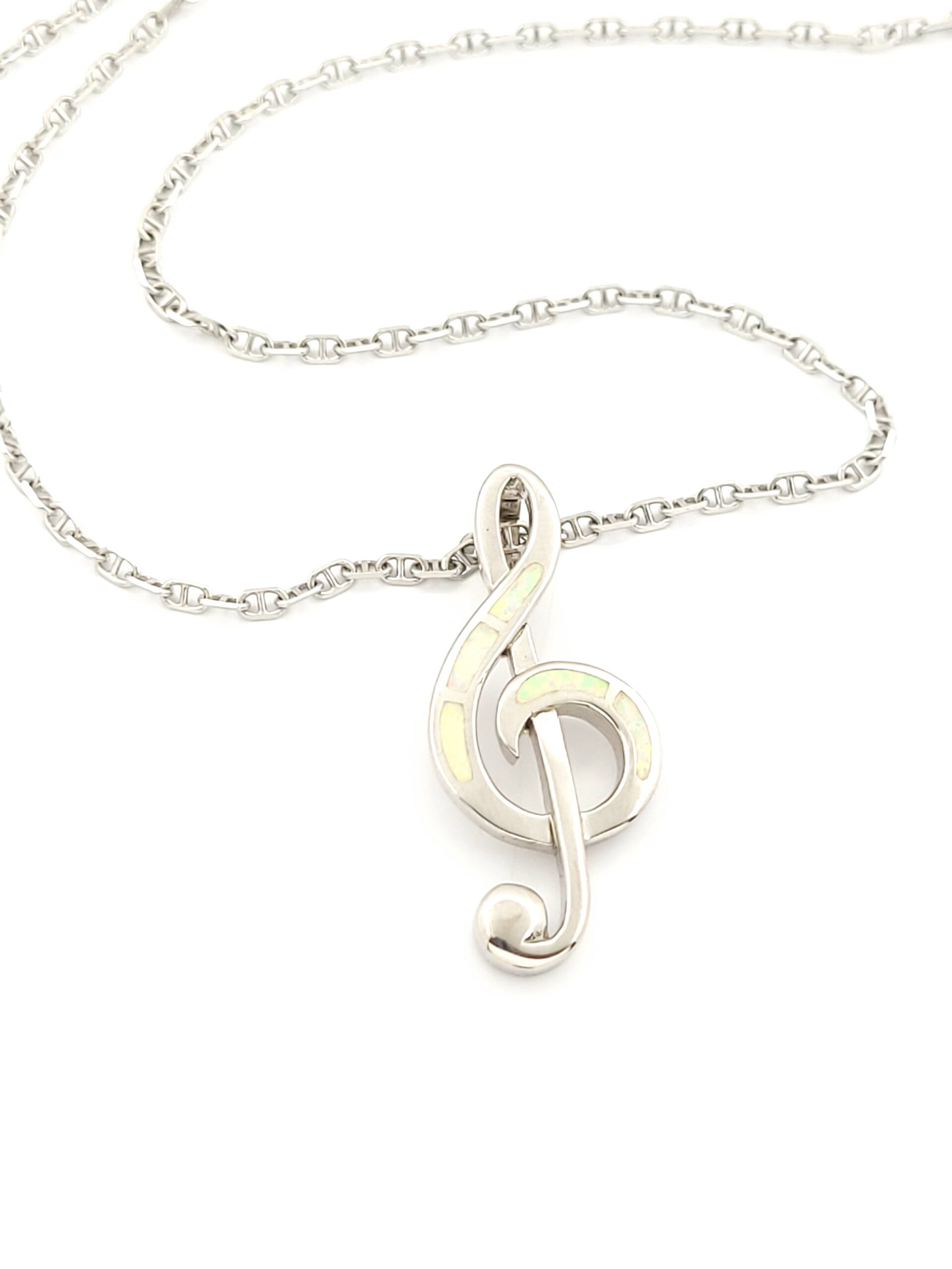 Ασημένιο Γυναικείο Κολιέ Κλειδί Του Σολ Με Λευκό Οπάλιο κωδ.108179