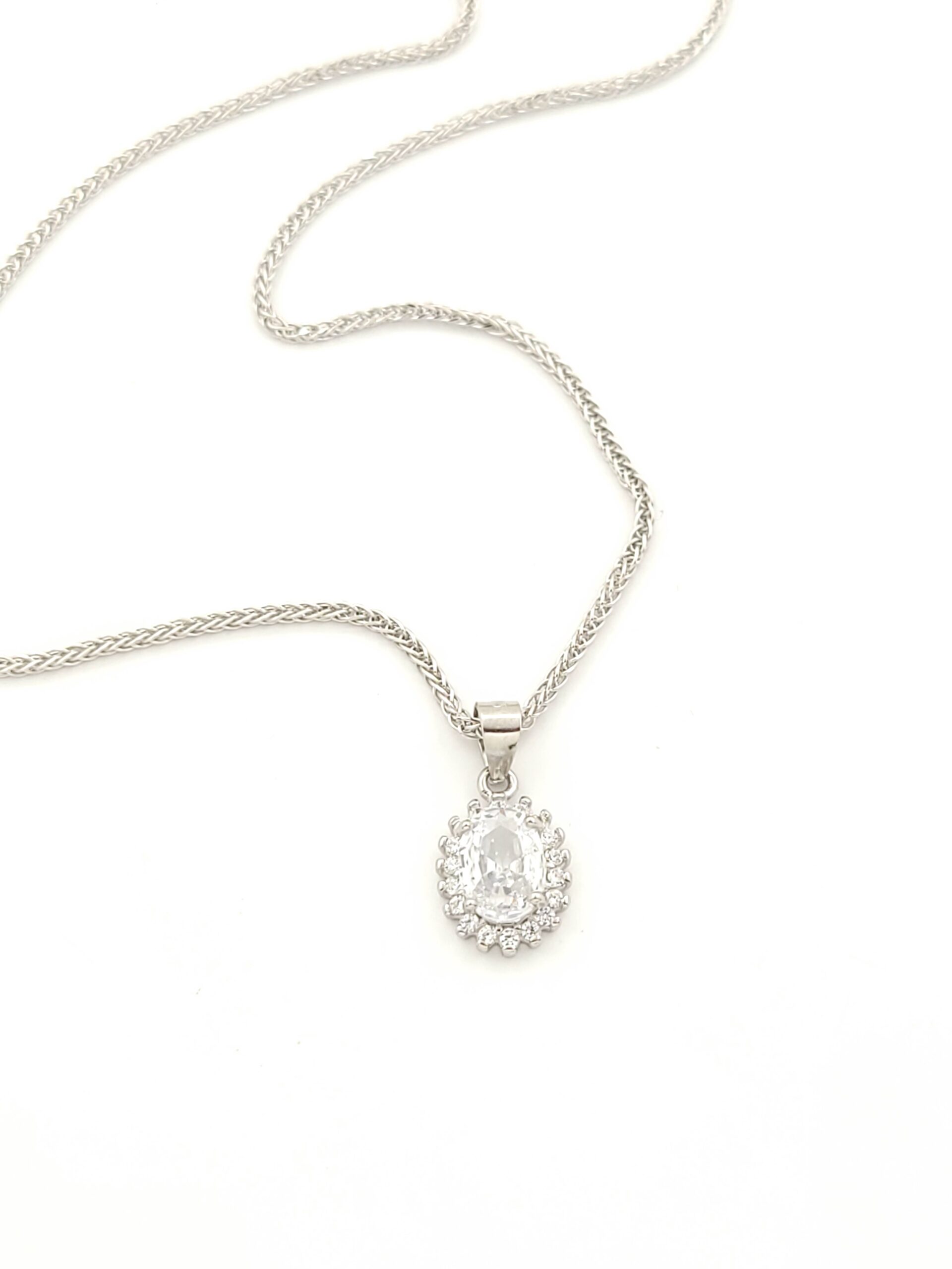 Ασημένιο Γυναικείο Κολιέ Luxor, Με Οβάλ Ροζέτα Με Λευκά Ζιργκόν