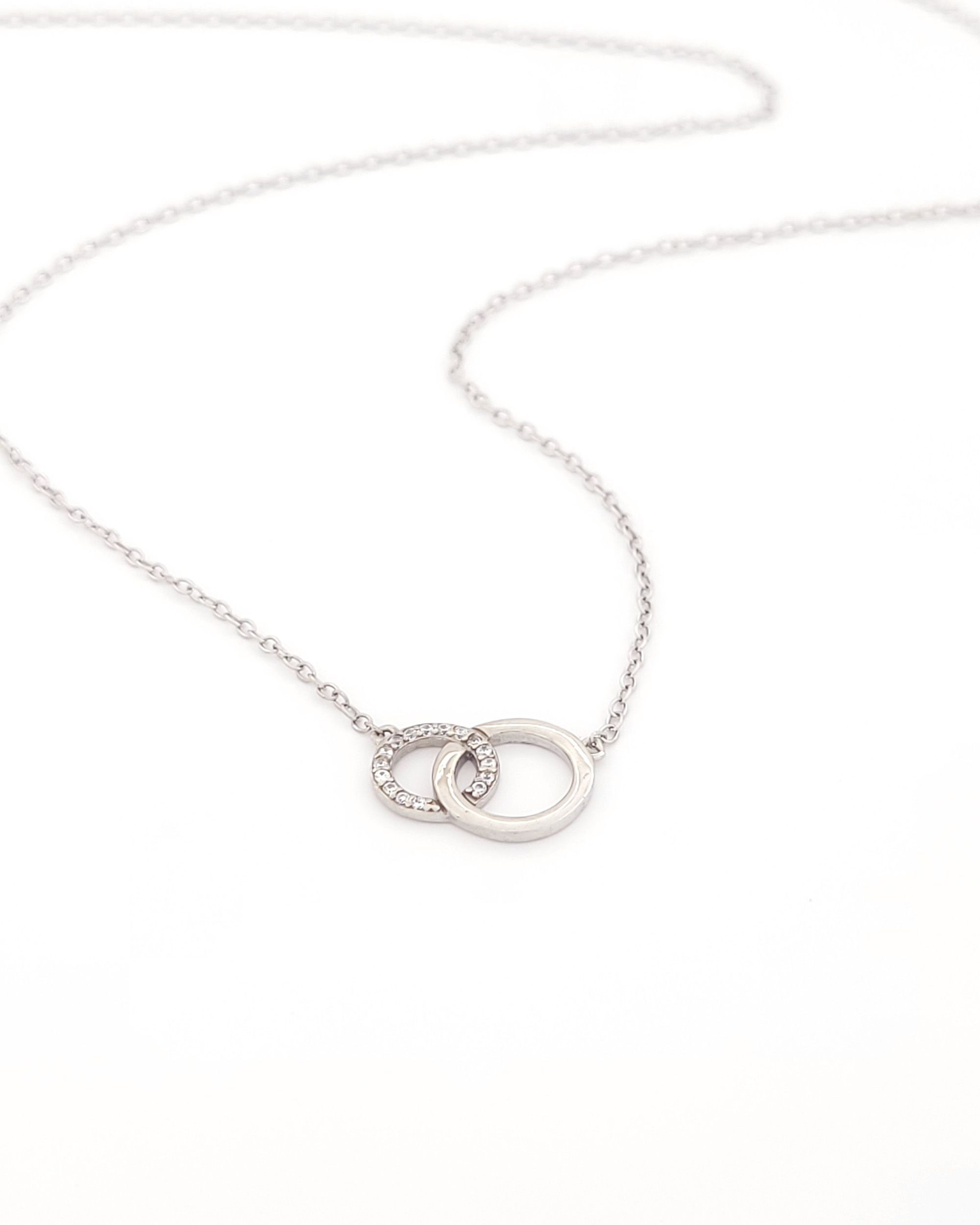 Ασημένιο Γυναικείο Κολιέ, Με Δυο Κύκλους Ενωμένους Με Ζιργκόν