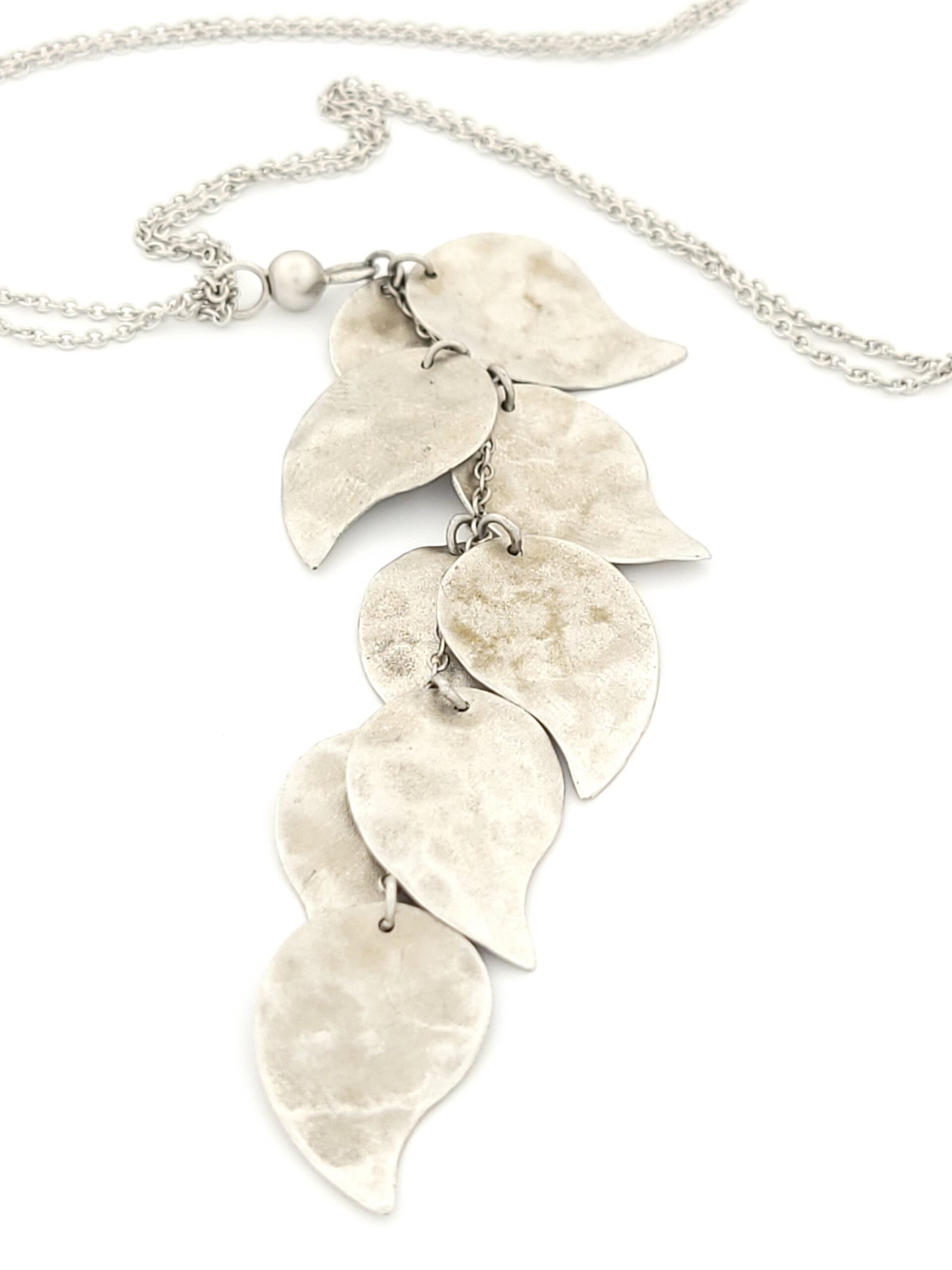 Ασημένιο Γυναικείο Κολιέ, Με Φύλλα Με Διπλή Αλυσίδα