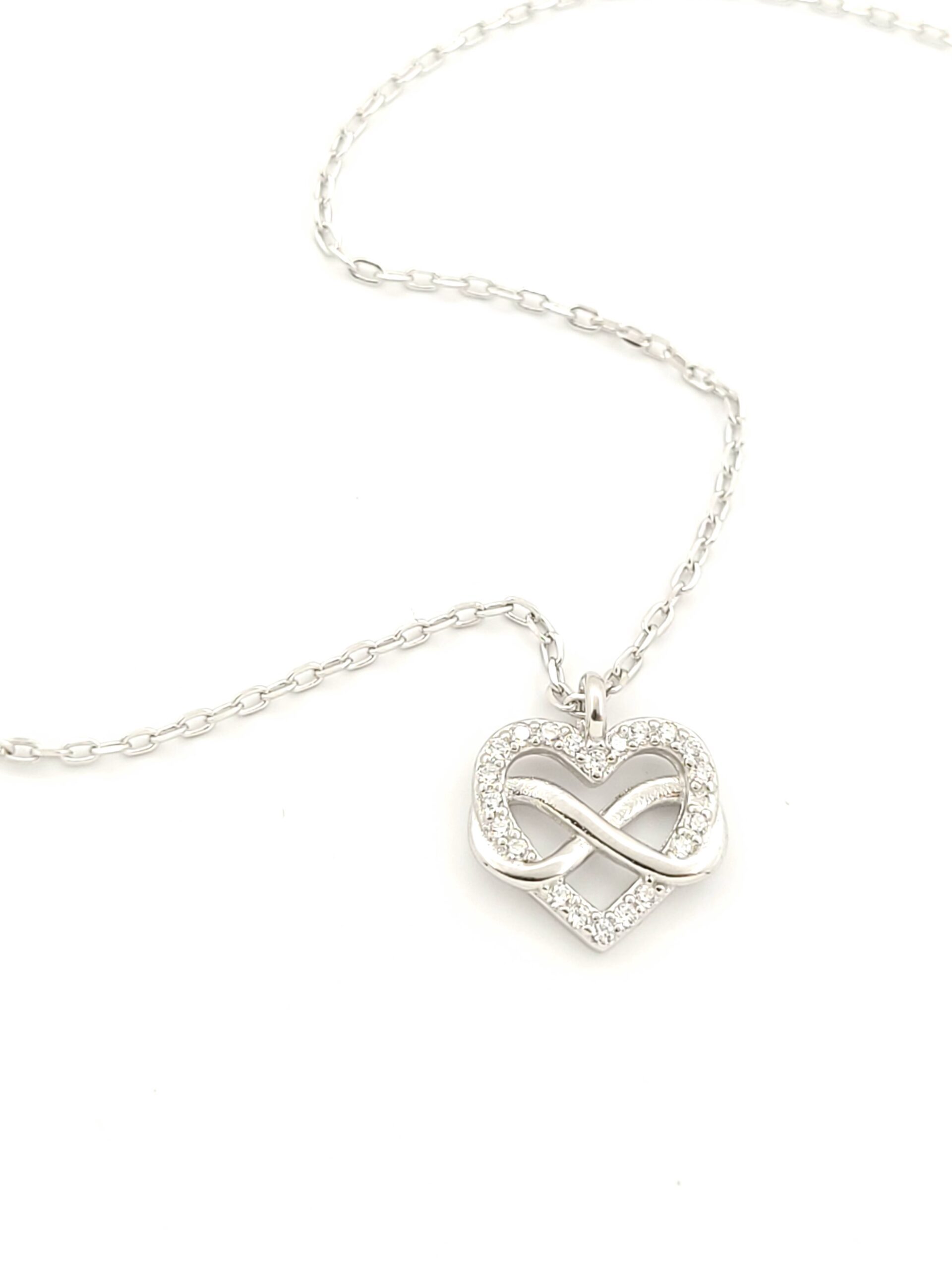 Ασημένιο Γυναικείο Κολιέ Με Καρδιά, Άπειρο και Λευκά Ζιργκόν