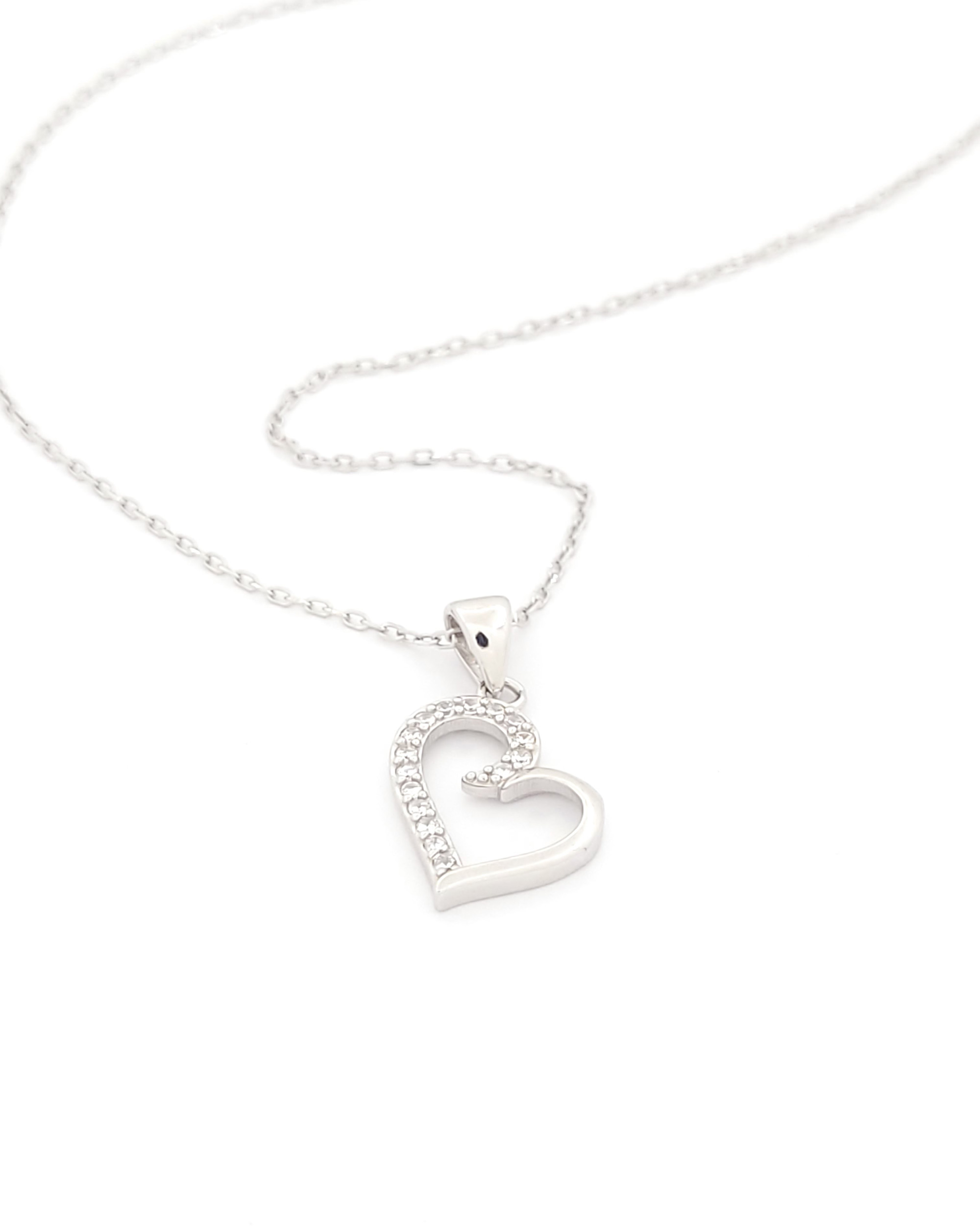 Ασημένιο Γυναικείο Κολιέ Με Καρδιά και Λευκά Ζιργκόν
