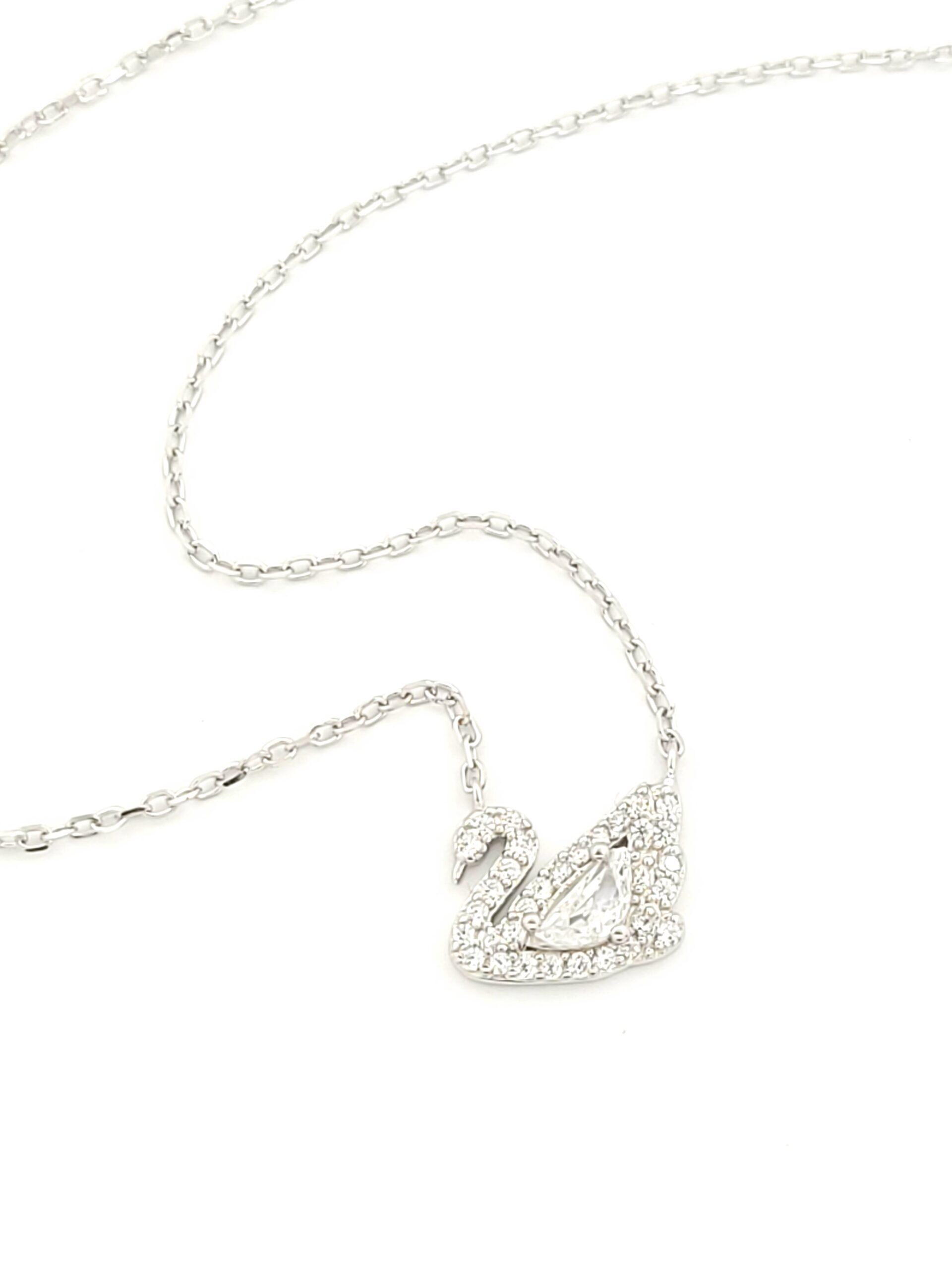 Ασημένιο Γυναικείο Κολιέ, Με Κύκνο Με Λευκά Ζιργκόν