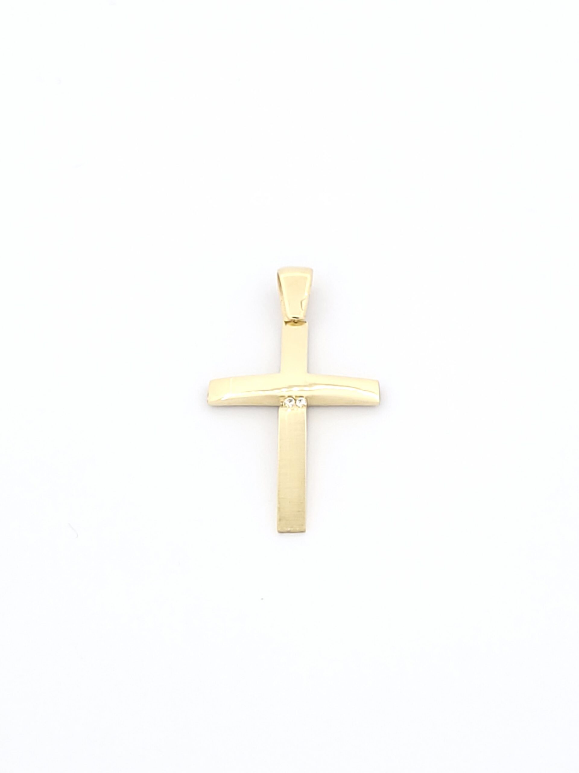 Χρυσός Γυναικείος Σταυρός Κ14, Με Λευκά Ζιργκόν κωδ.104258