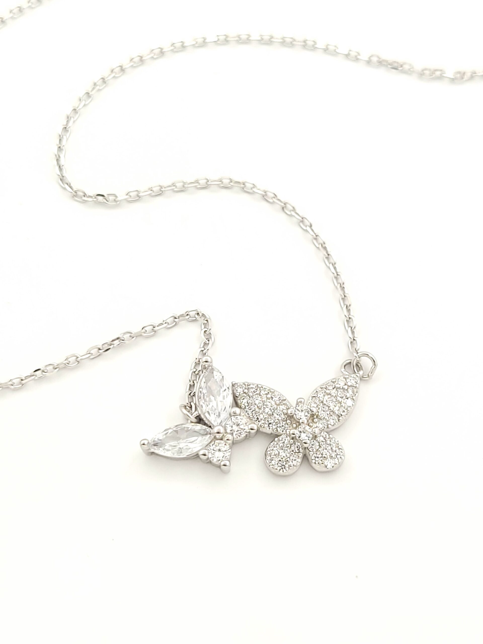 Ασημένιο Γυναικείο Κολιέ, Με Πεταλούδες Με Λευκά Ζιργκόν