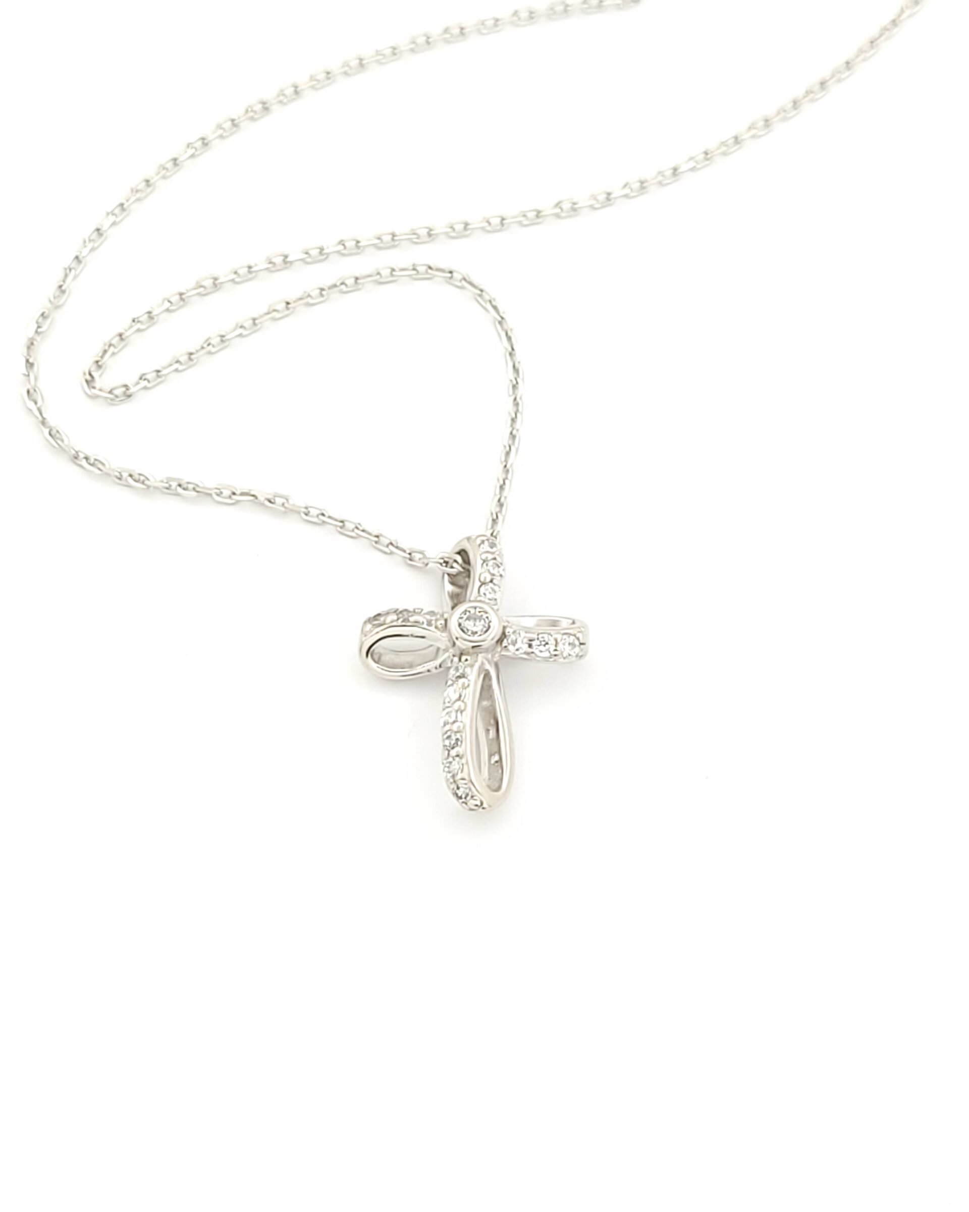 Ασημένιο Γυναικείο Κολιέ, Με Σταυρό Με Λευκά Ζιργκόν