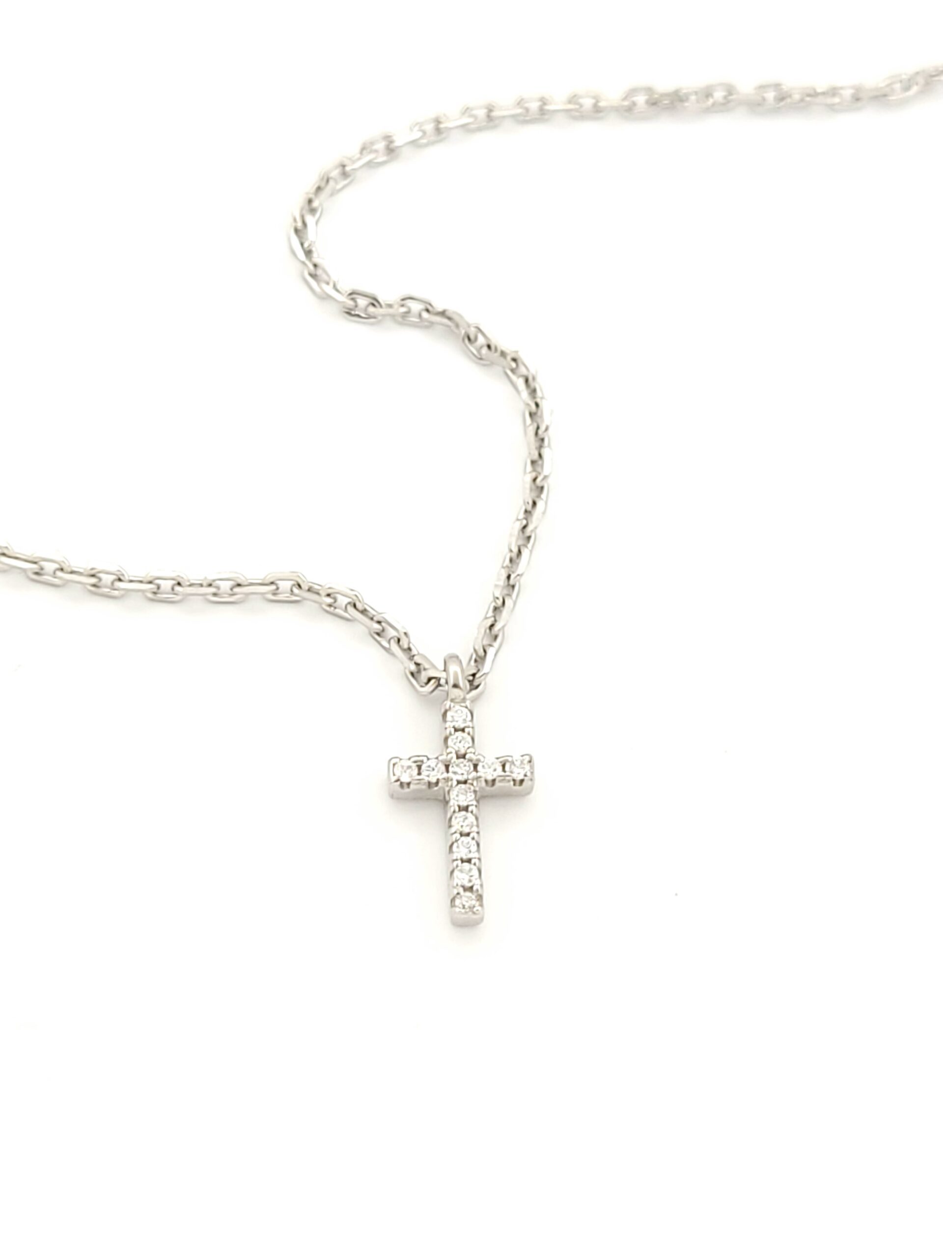 Ασημένιο Γυναικείο Κολιέ, Με Σταυρό Με Λευκά Ζιργκόν