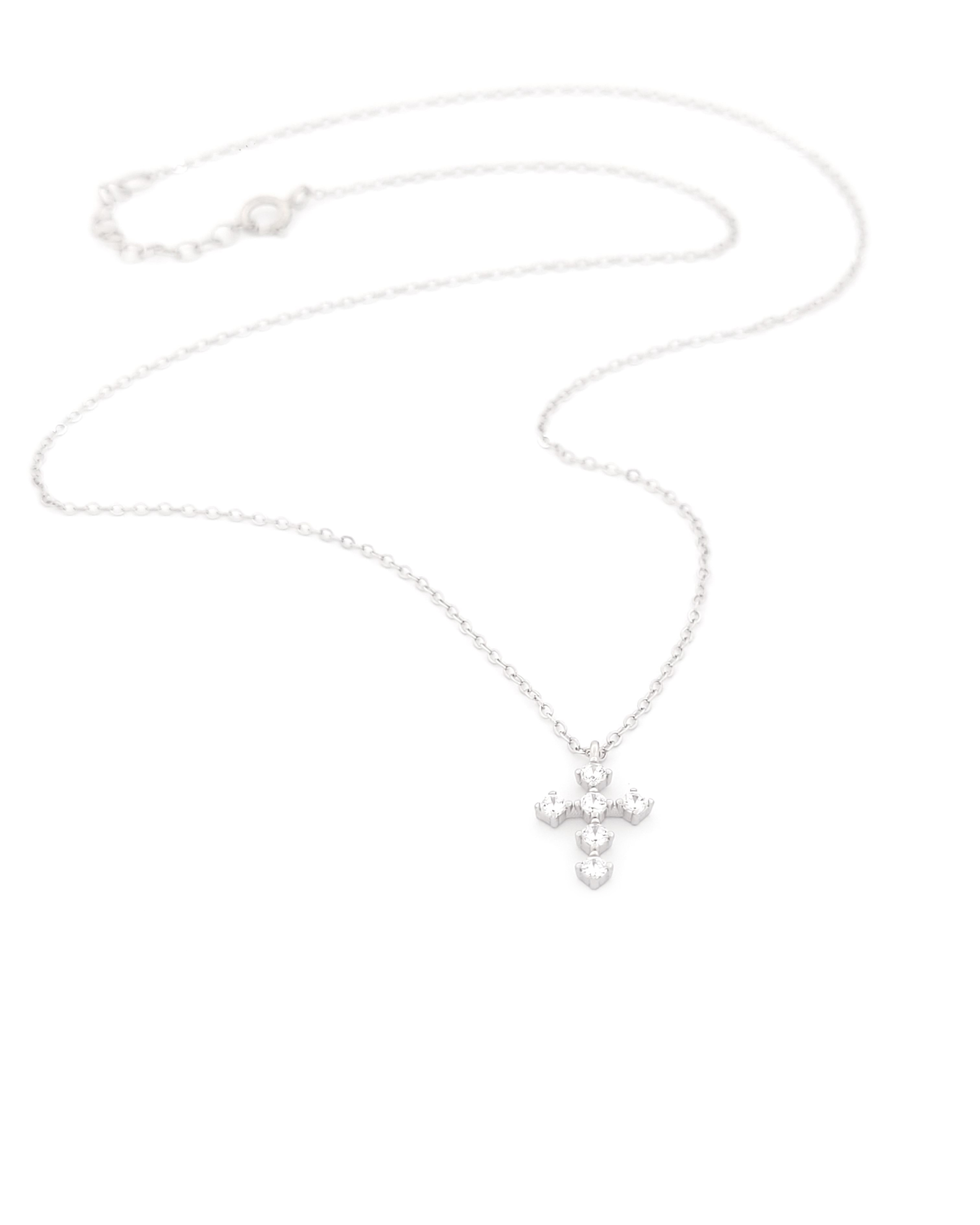 Ασημένιο Γυναικείο Κολιέ, Με Σταυρό Με Λευκά Ζιργκόν